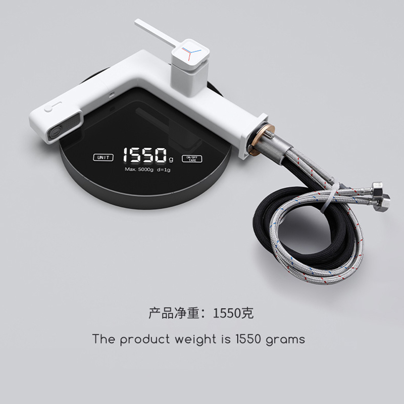 全白多功能简约面盆双孔分体式水龙头抽拉式洗手盆台盆浴室柜龙头