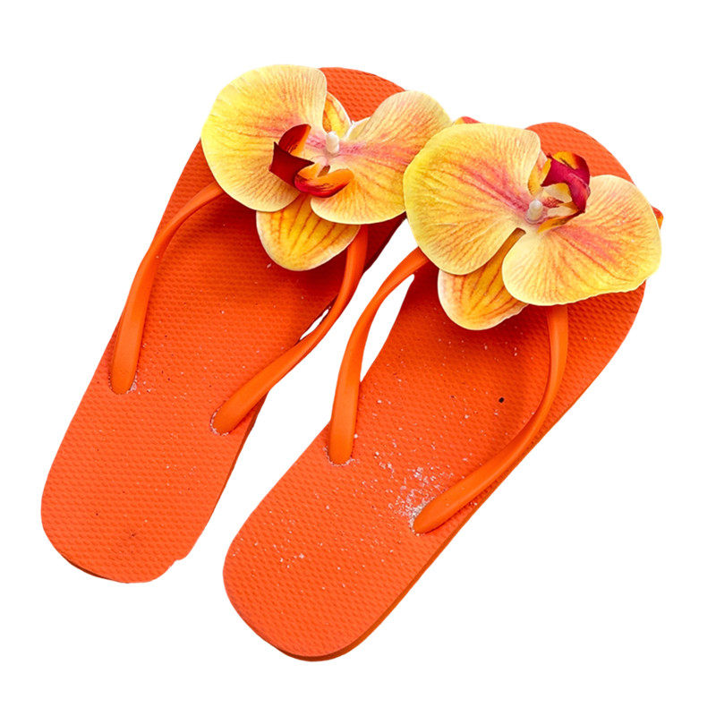 海边百搭女夏外穿韩系纯欲风夹脚易梦玲同款蝴蝶兰人字拖橘色拖鞋