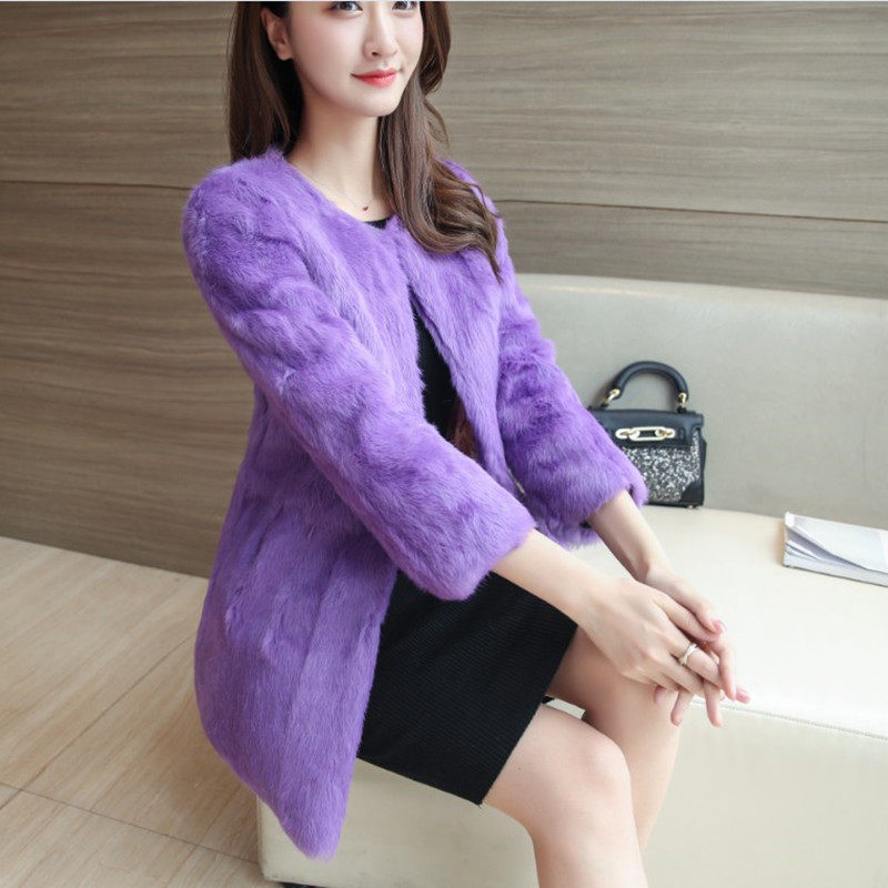 2023秋冬季海宁整皮兔毛皮草特价清仓 韩版女装九分袖中长款外套