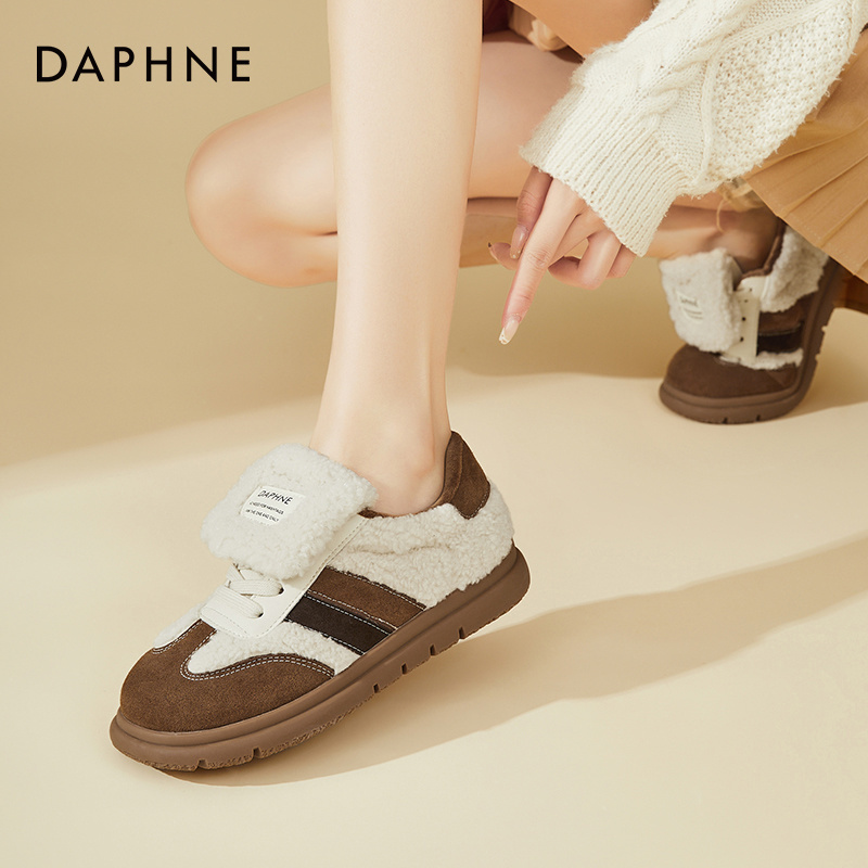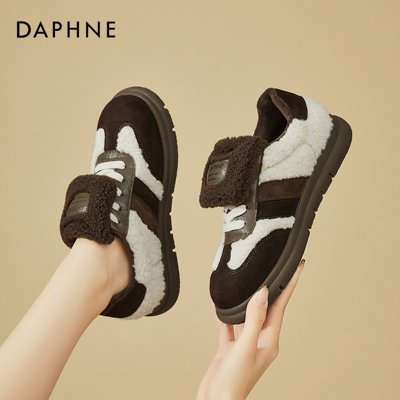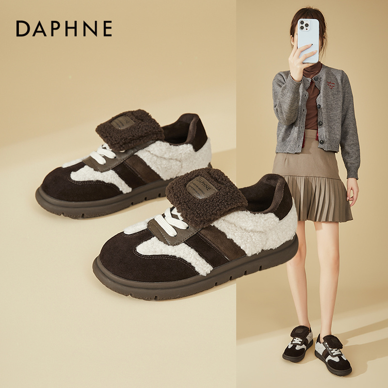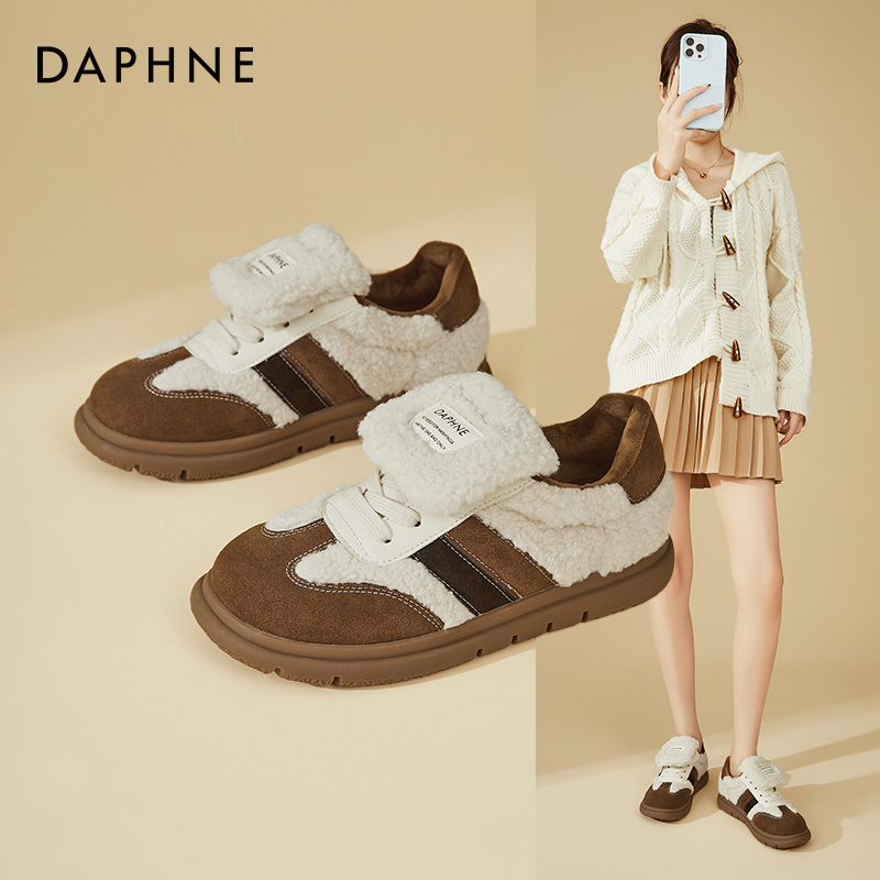 达芙妮出街板鞋女2025新款春秋厚底德训鞋松糕软底毛绒休闲鞋