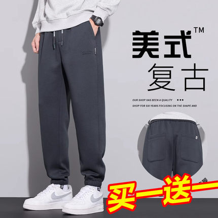 Yishion以纯官方时尚正品男士休闲裤2025秋冬新款宽松加绒卫裤运