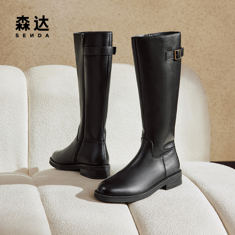 森达骑士靴女靴2024年冬季新款商场同款加绒高筒长筒靴XEN01DG4