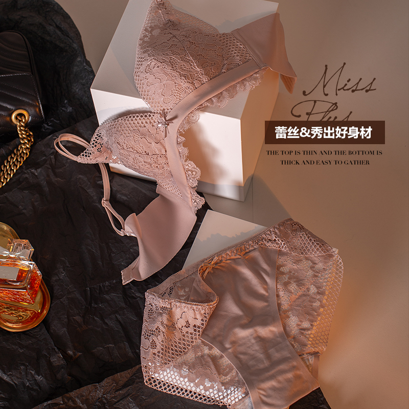 法式三角杯内衣女无钢圈小胸聚拢调整型上托显大性感蕾丝文胸套装