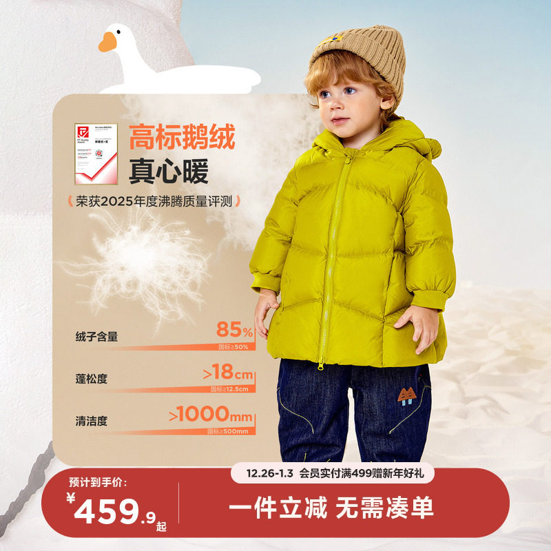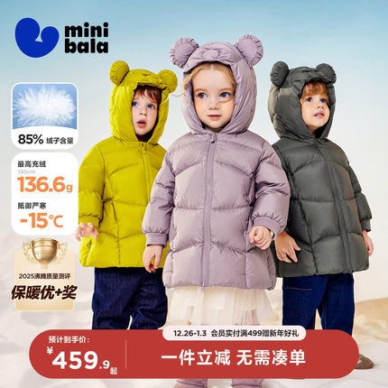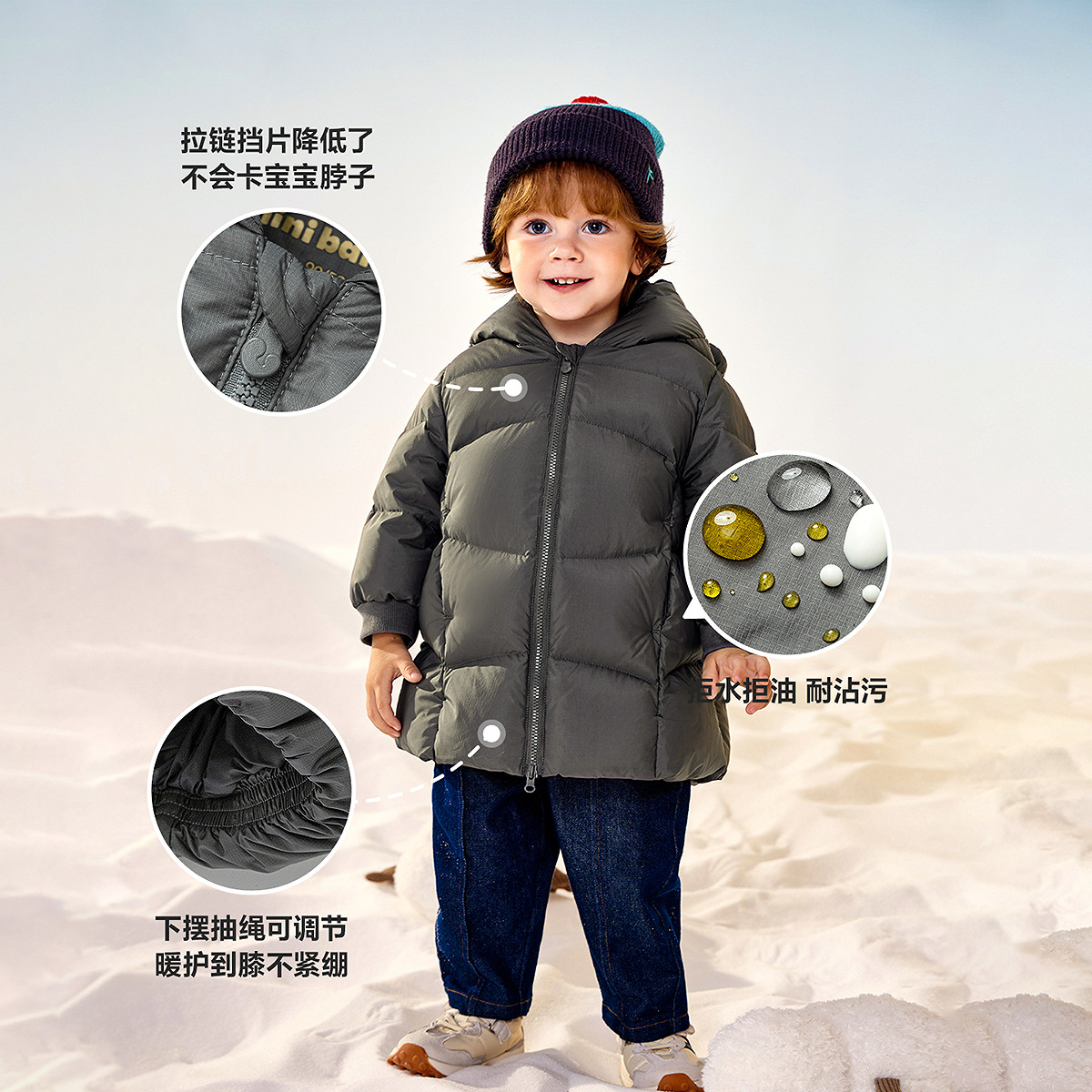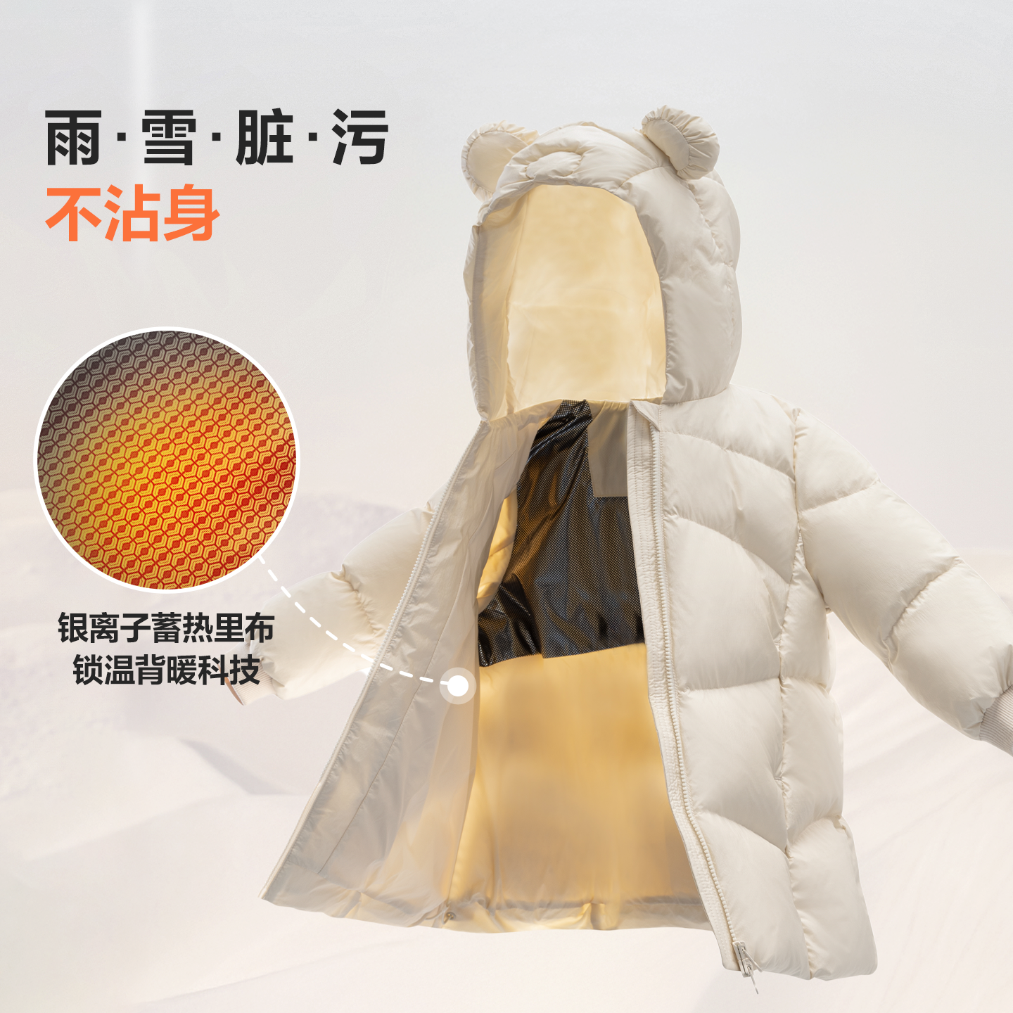 [真心绒]迷你巴拉男女童三防羽绒服宝宝鹅绒长款外套面包服冬
