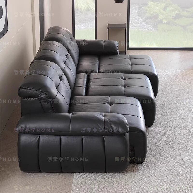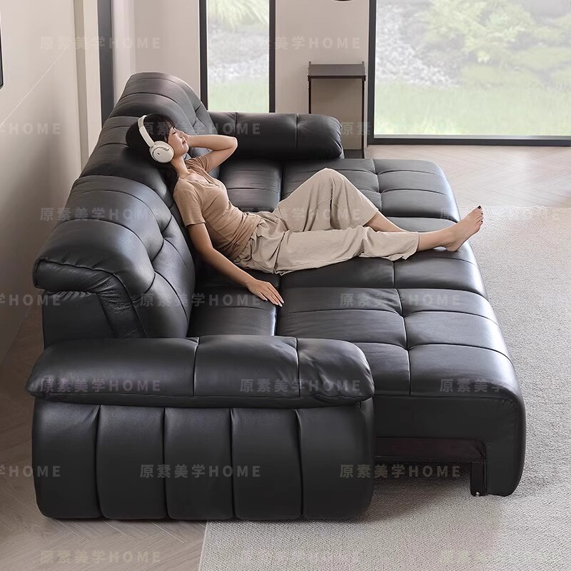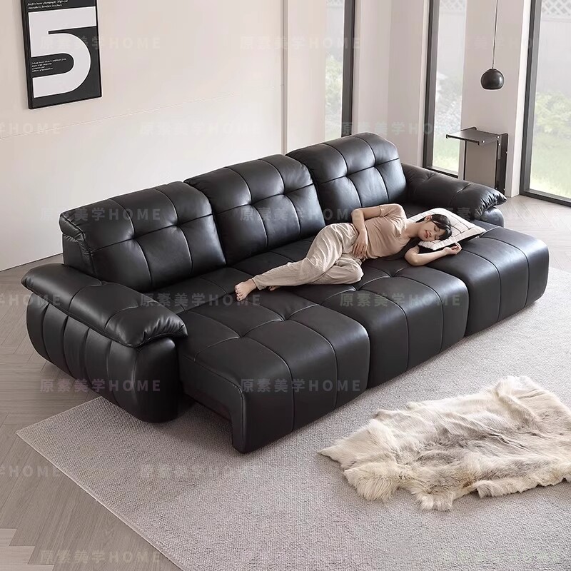 意式极简头层牛皮客厅电动沙发床可调节伸缩直排功能真皮云漫沙发