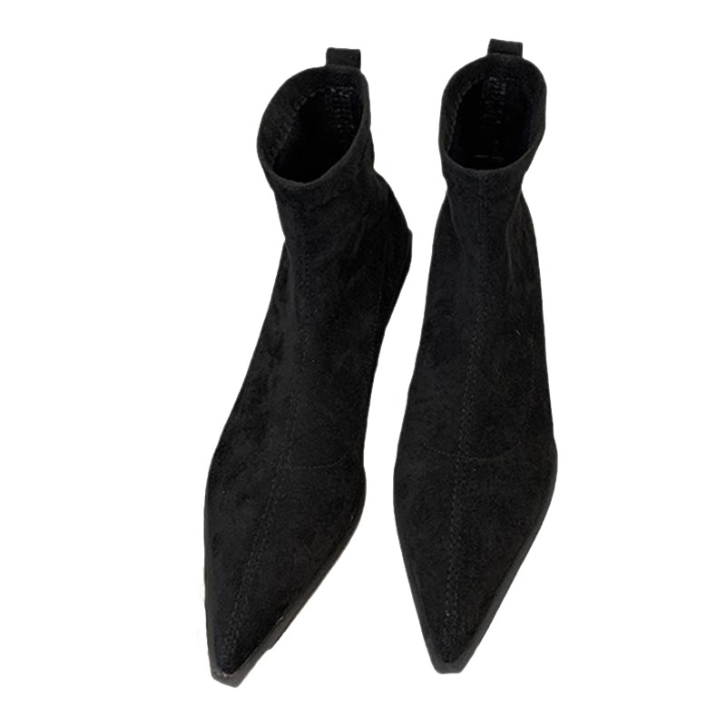 时尚尖头绒面单靴子2025年新款气质粗跟时装靴短靴女靴弹力瘦瘦靴