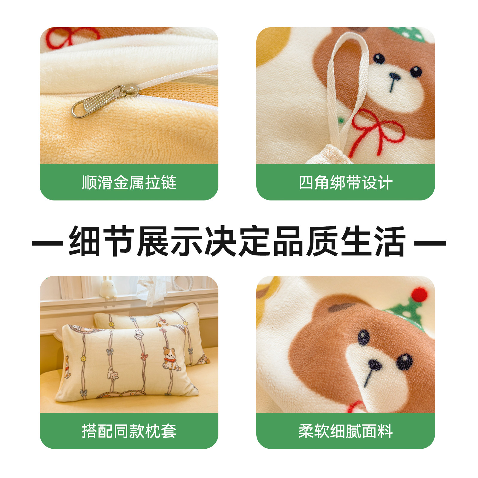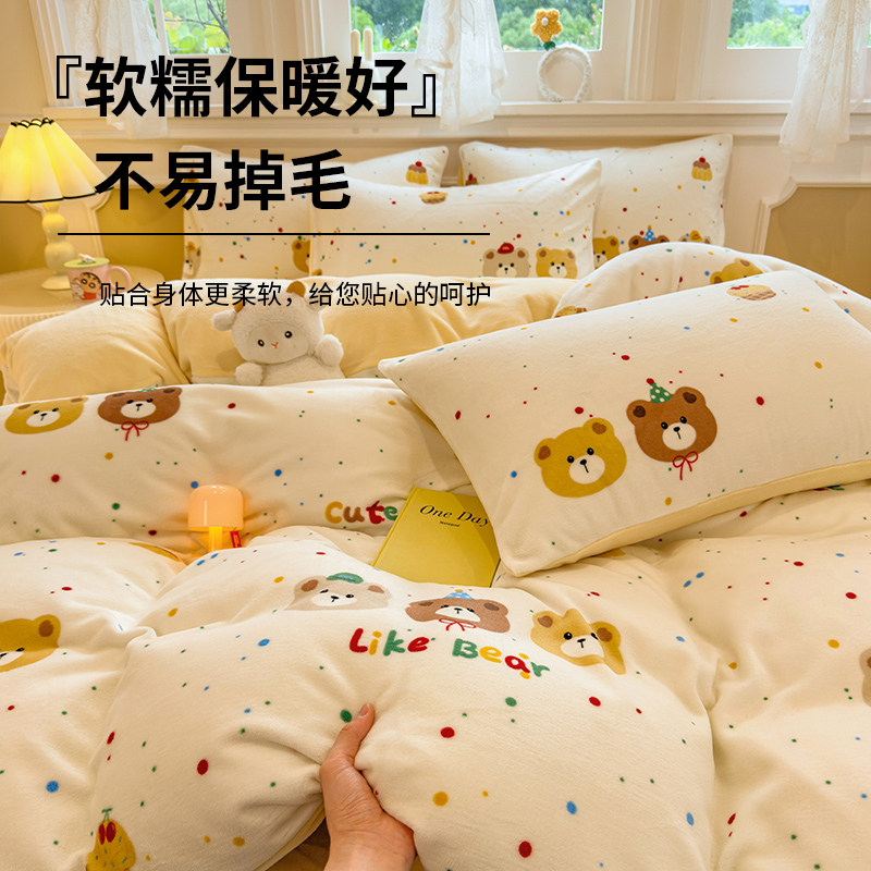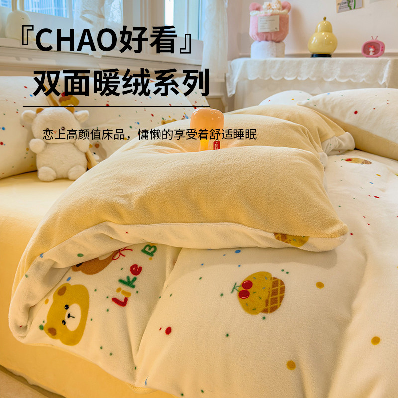 双面牛奶绒加绒四件套珊瑚绒被罩