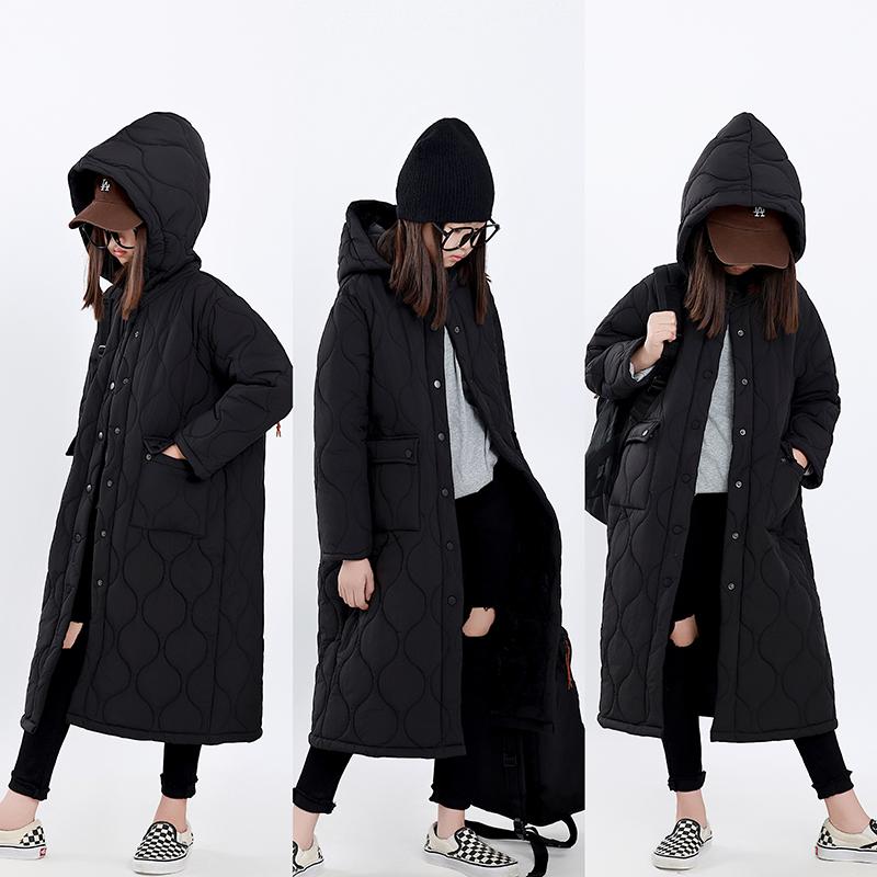 H AND E 原创童装2025新款冬季暗黑系菱形格绗棉连帽长棉服女童装
