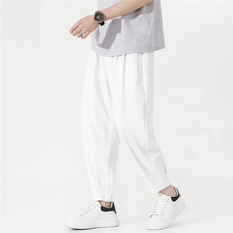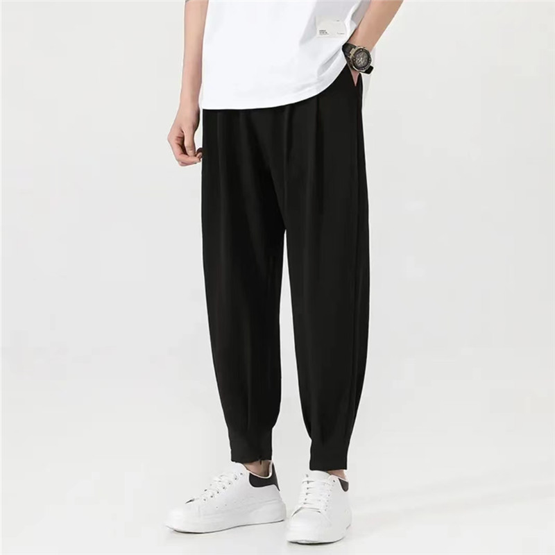 冰丝裤男夏季速干宽松垂感小脚九分裤松紧腰小个子男裤薄款休闲裤