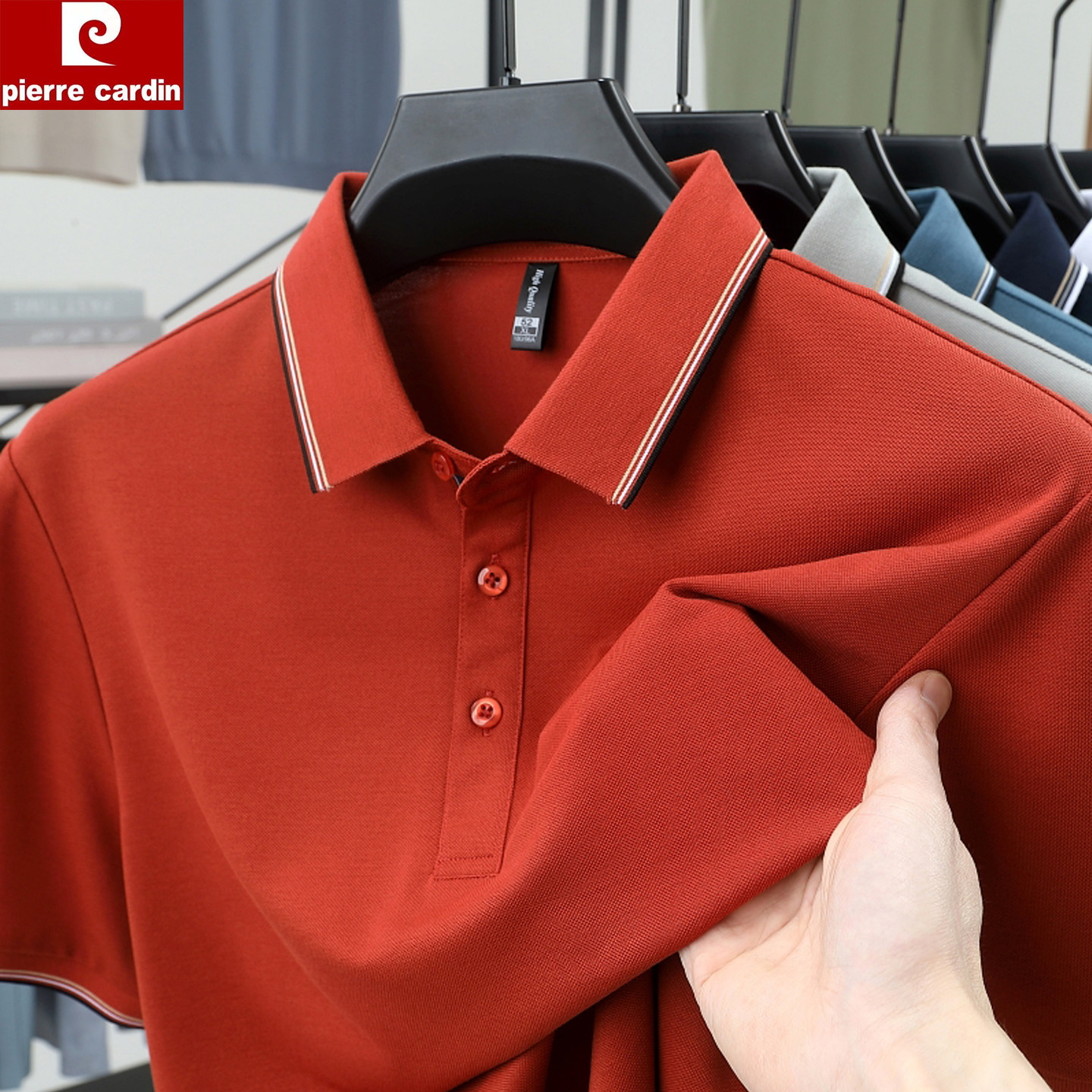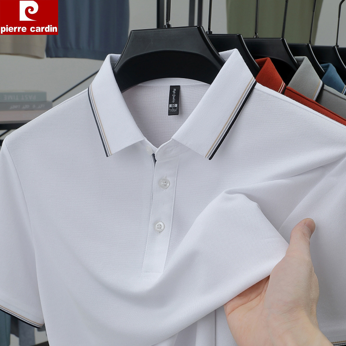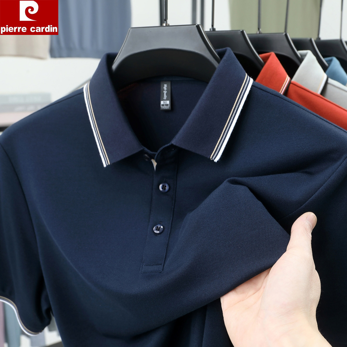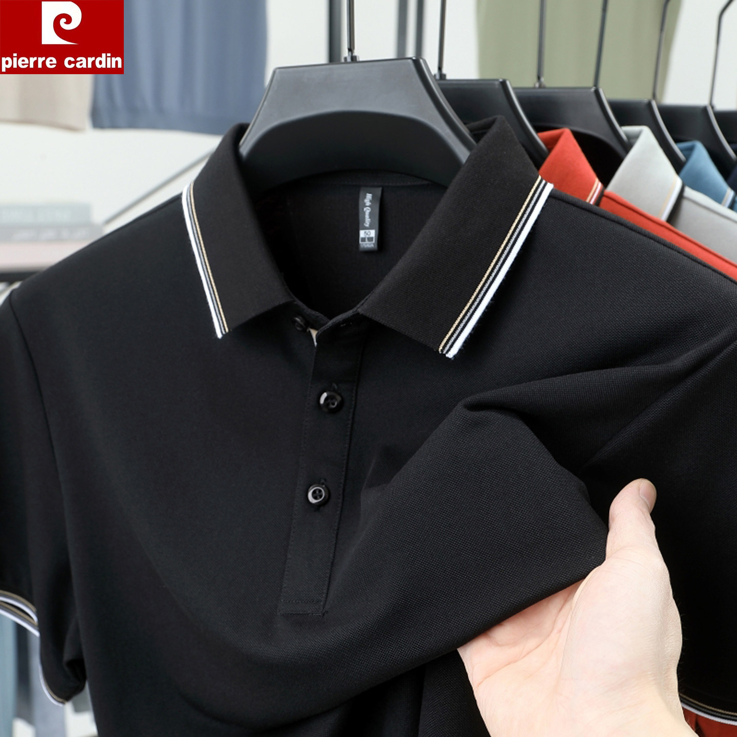 皮尔卡丹翻领POLO衫男纯色夏季桑蚕丝短袖t恤男轻奢高档半袖上衣