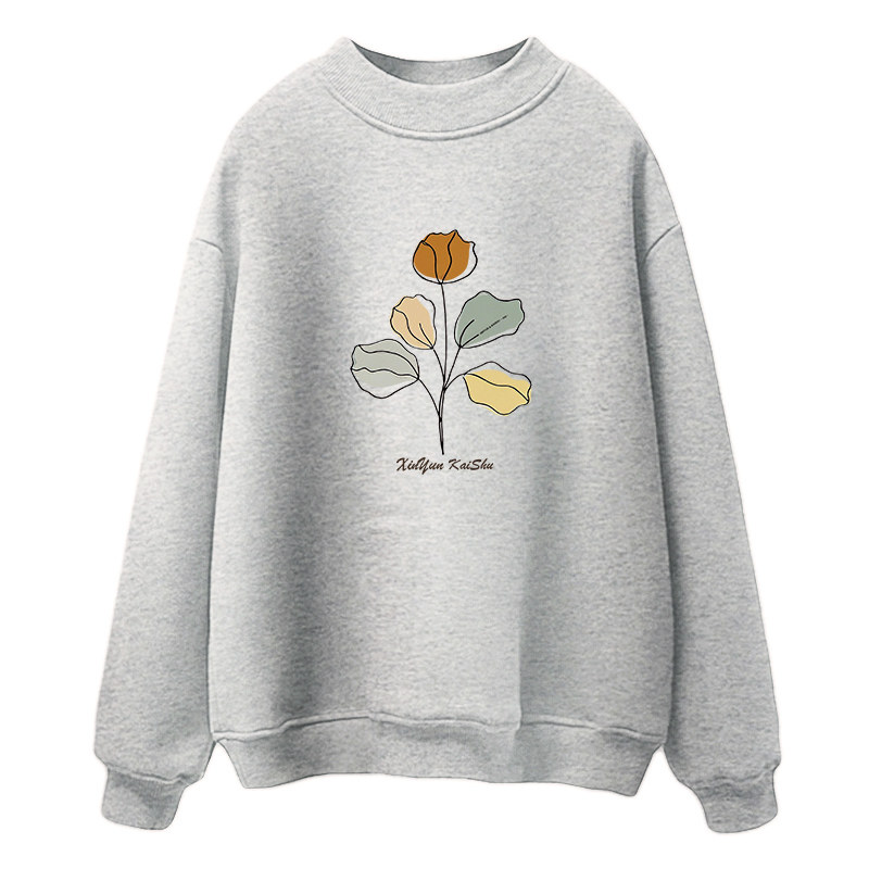 纯棉半高领卫衣女打底衫宽松加绒秋冬季毛圈灰色百搭长袖休闲上衣