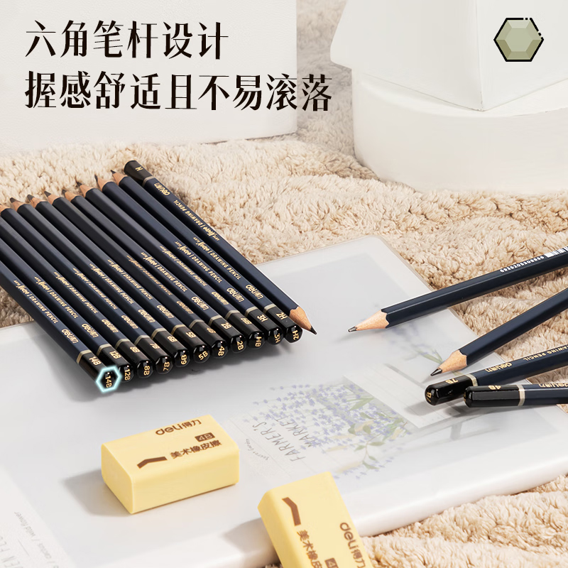 得力素描铅笔hb小学生考试专用黑笔安全无铅毒2b儿童一二年级学生铅笔幼儿园学习文具用品套装练字答题