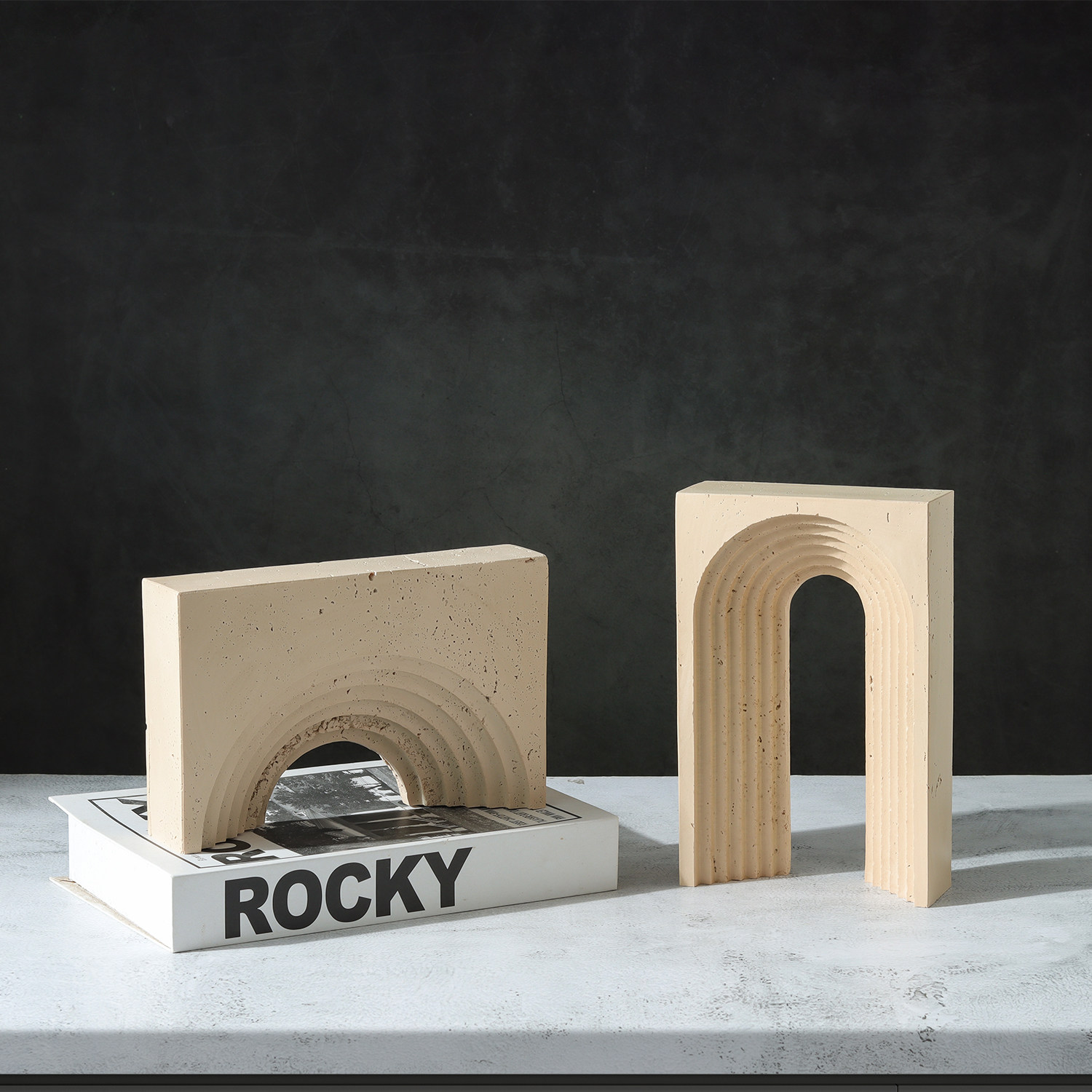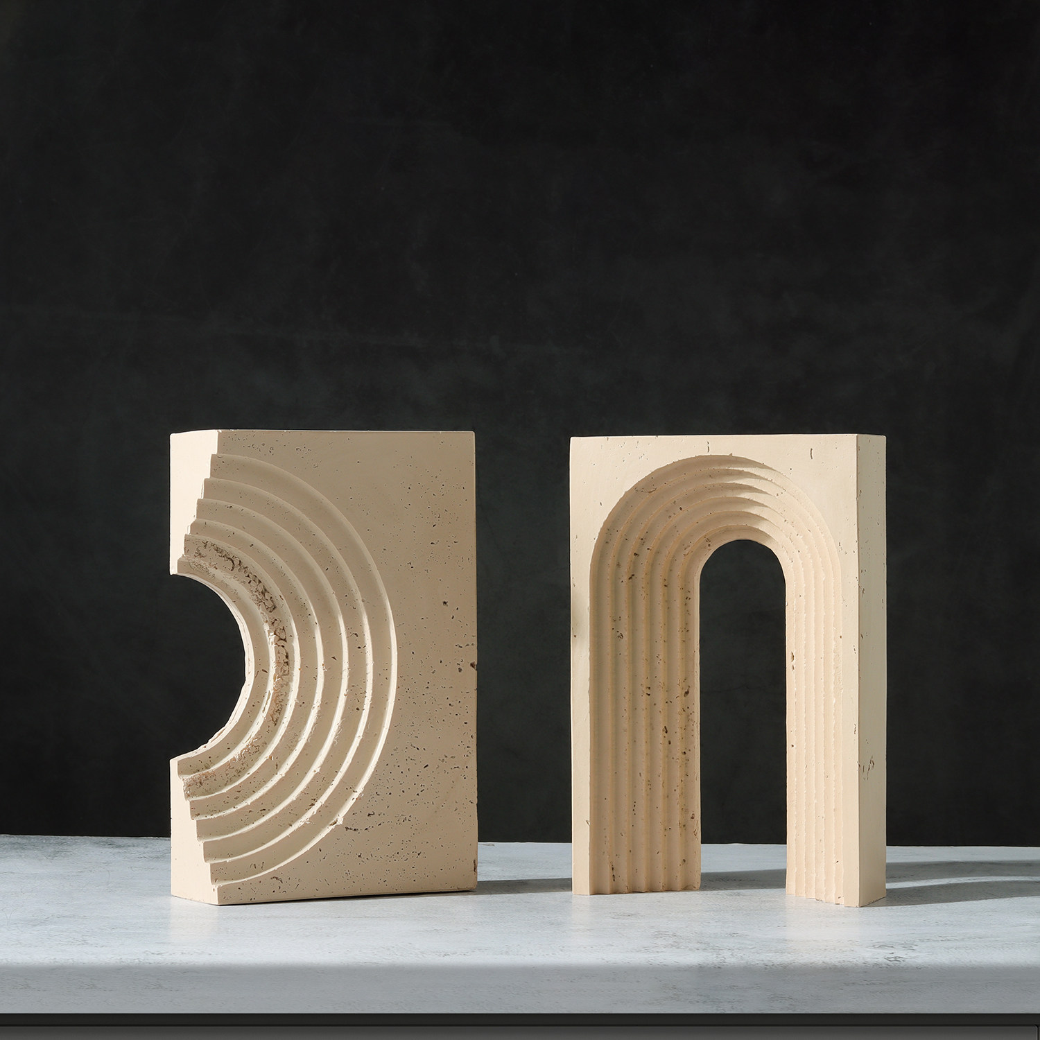 现代北欧诧寂复古树脂仿洞石几何形工艺品摆件家居样板间软装饰品