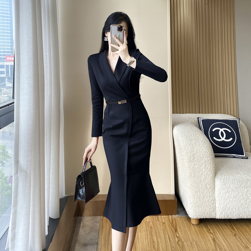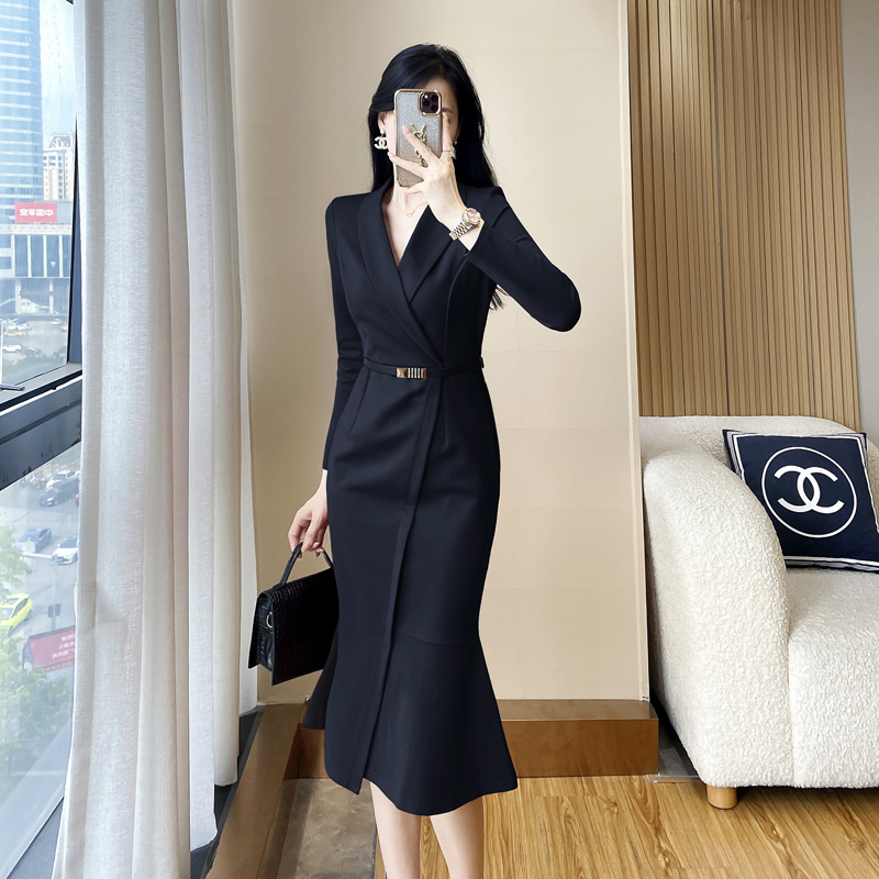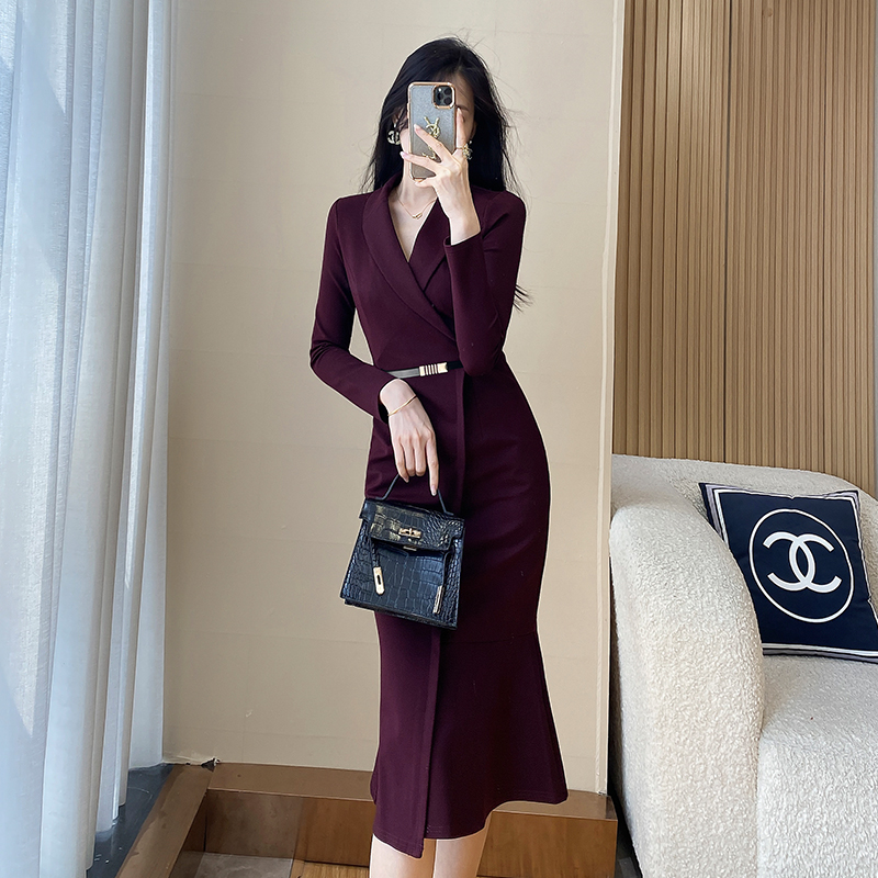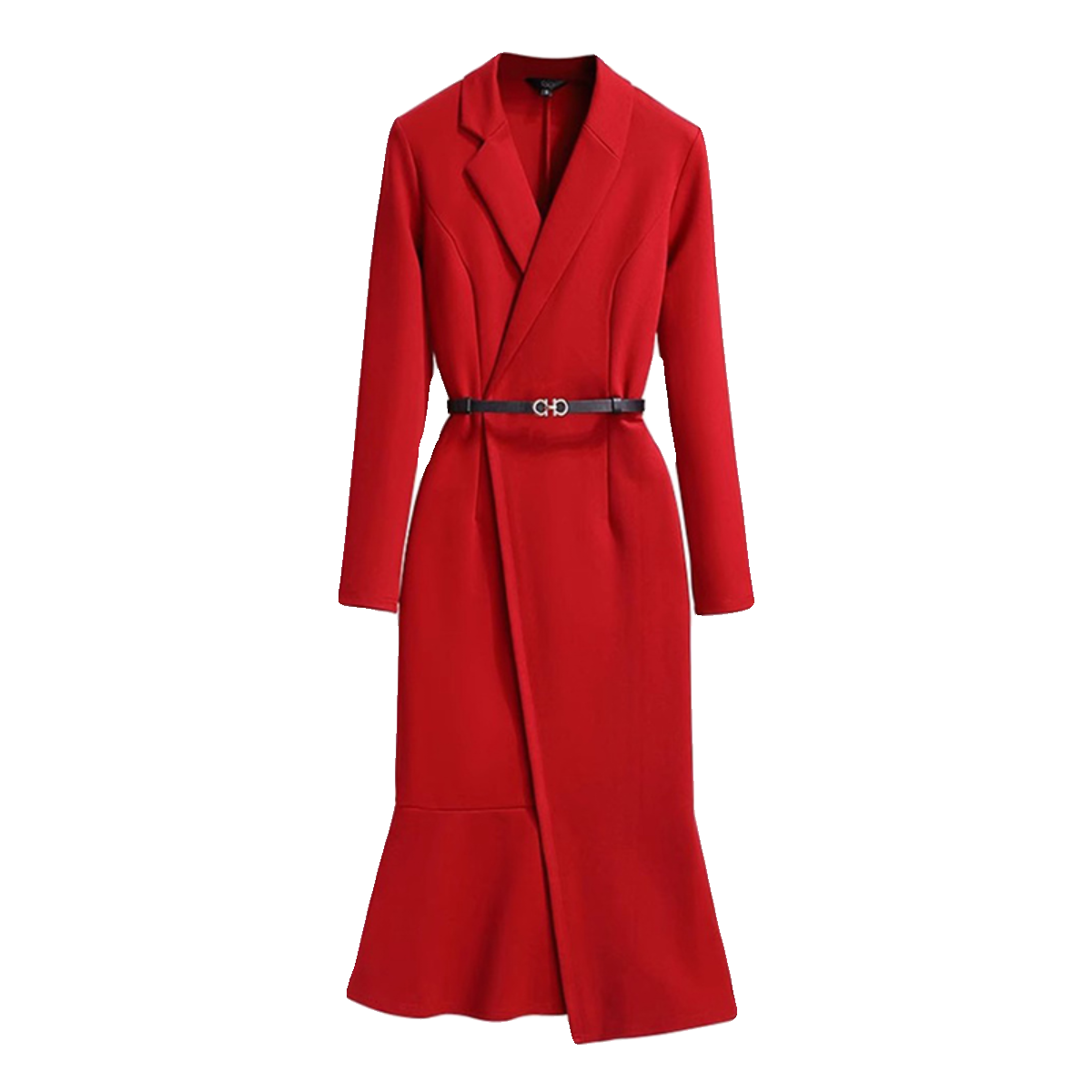 红色气质西装裙连衣裙秋冬女神范职业装高端精致显瘦礼服鱼尾裙子