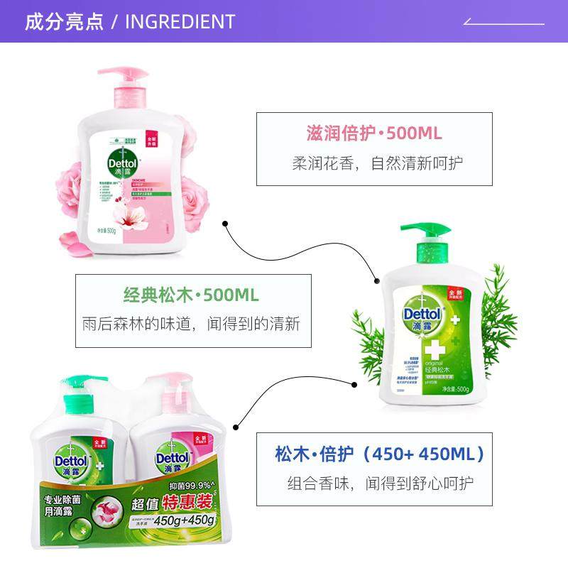 滴露抑菌洗手液家用滋润松木清新家庭装套装男女儿童大瓶按压正品