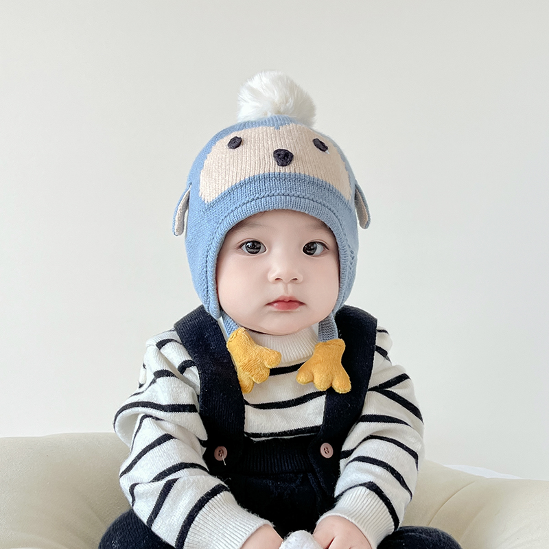婴儿帽子秋冬季可爱超萌针织护耳帽男女宝宝保暖小月龄套头毛线帽