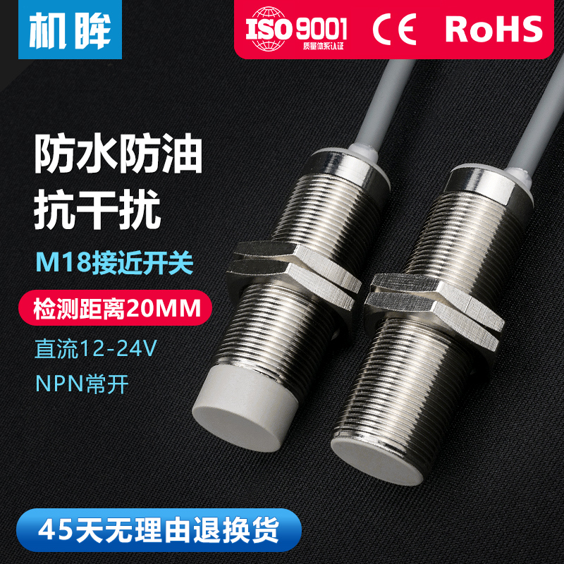 M18电感接近开关传感器三线24V常开金属感应开关电眼感应器探头