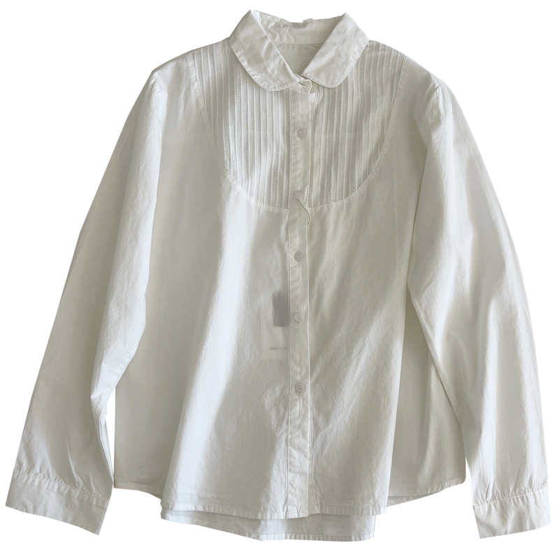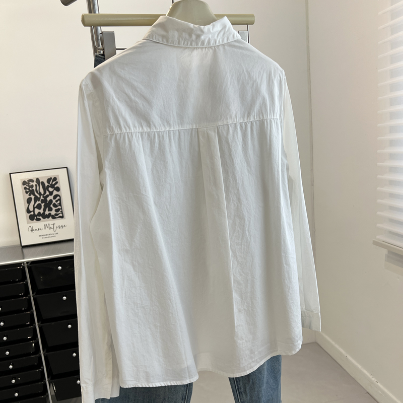 韩版隐条拼接设计感翻领白色长袖衬衫女春秋季百搭宽松气质衬衣潮
