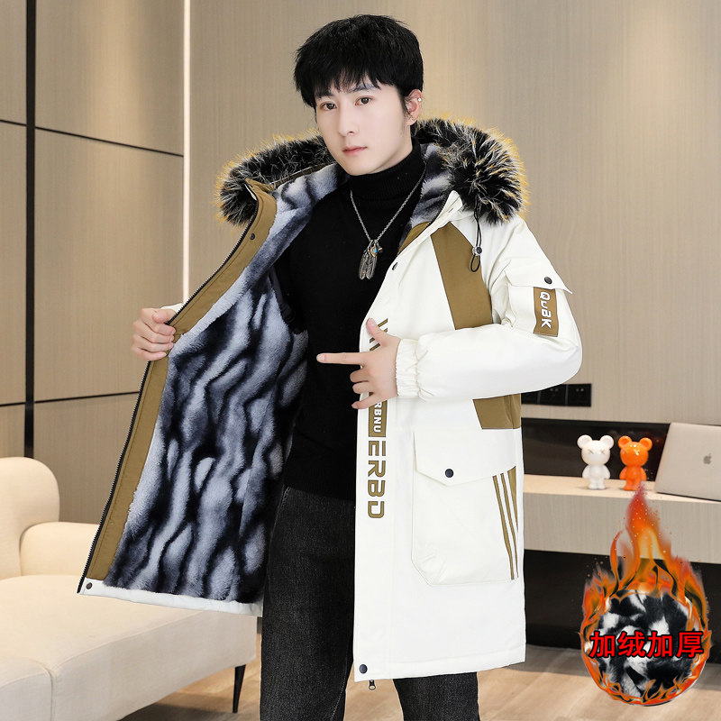 2025新款冬季男装中长款加绒加厚夹克外套青少年棉衣风衣棉服