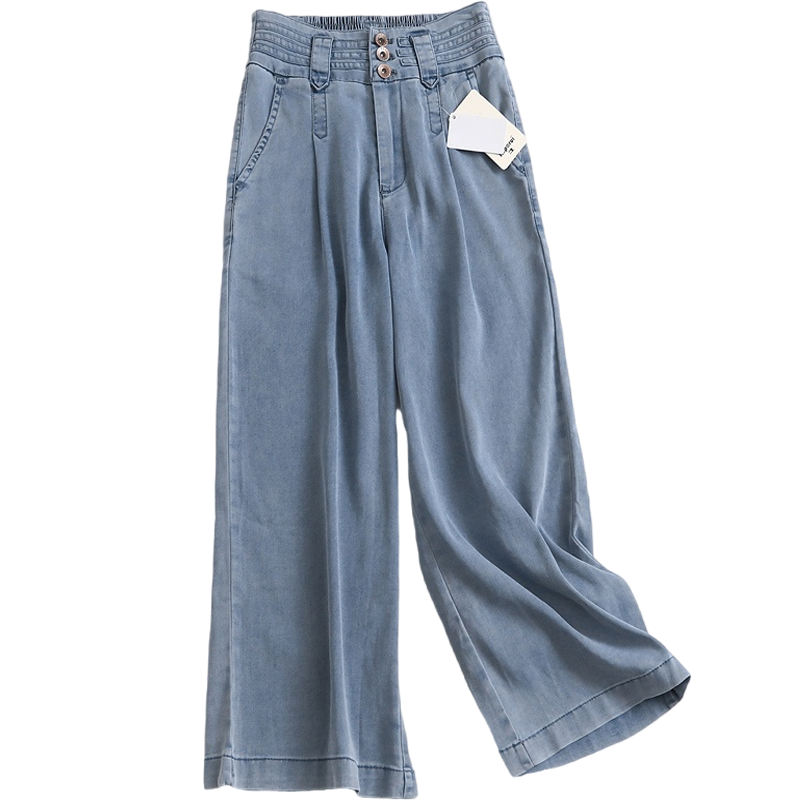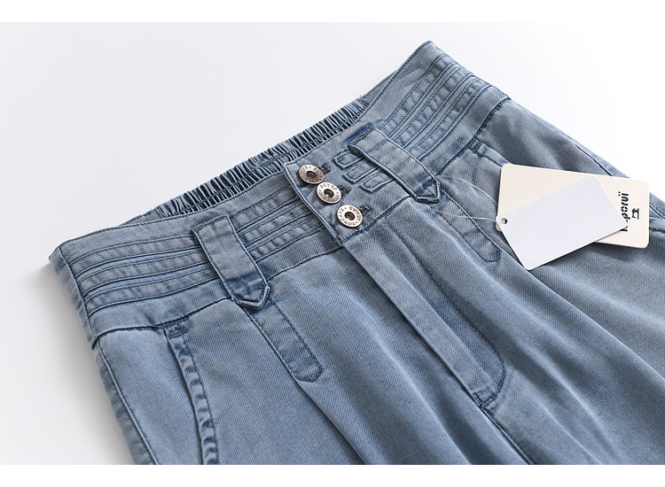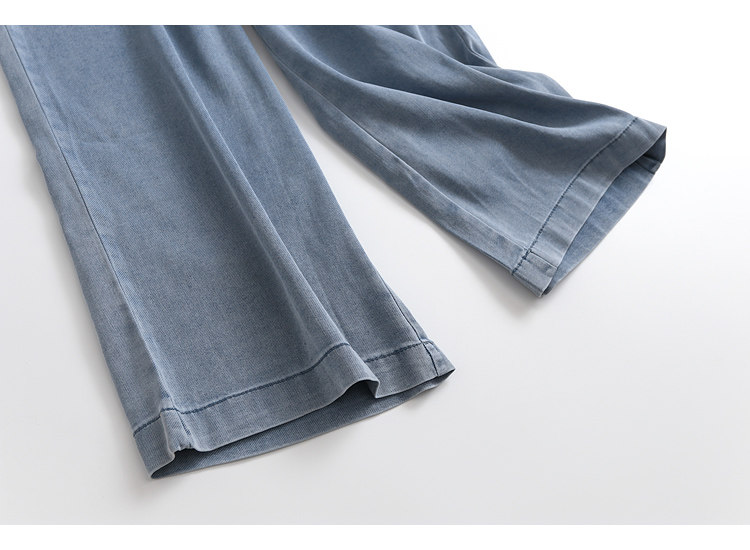 L660牛仔裤女夏季薄款松紧高腰直筒九分裤冰丝垂感阔腿九分裤