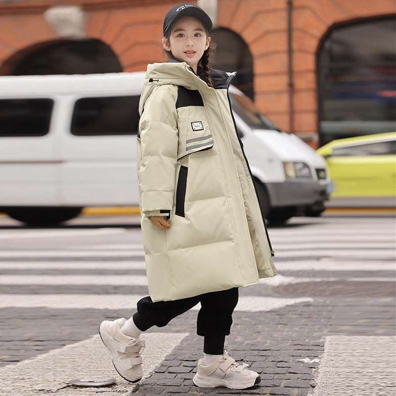 男童中长款羽绒服2024冬新款波伺登儿童加厚连帽女童过膝洋气外套