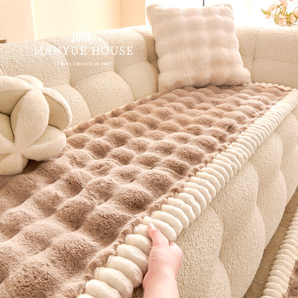 M.life 加绒加厚兔毛绒沙发垫高级感客厅沙发套罩布巾固定防滑