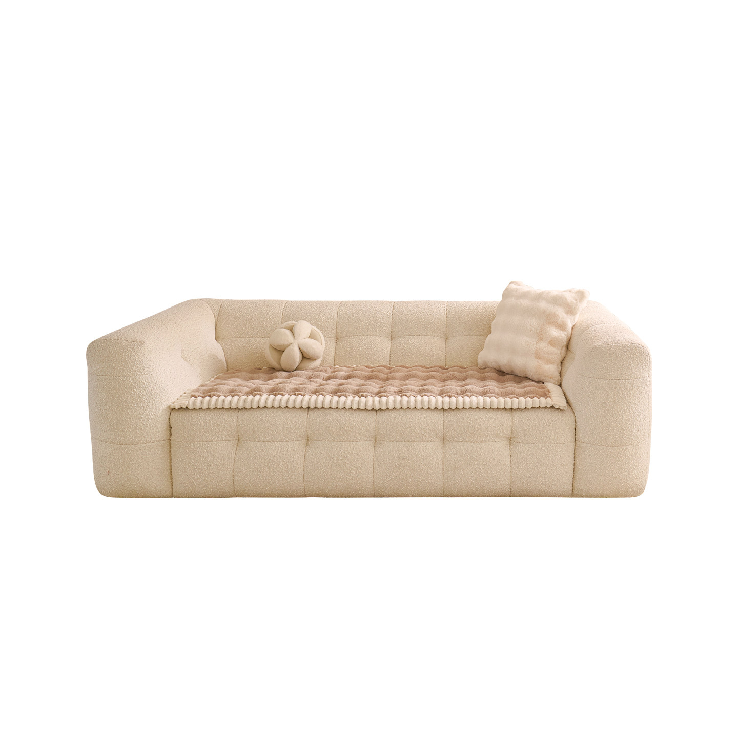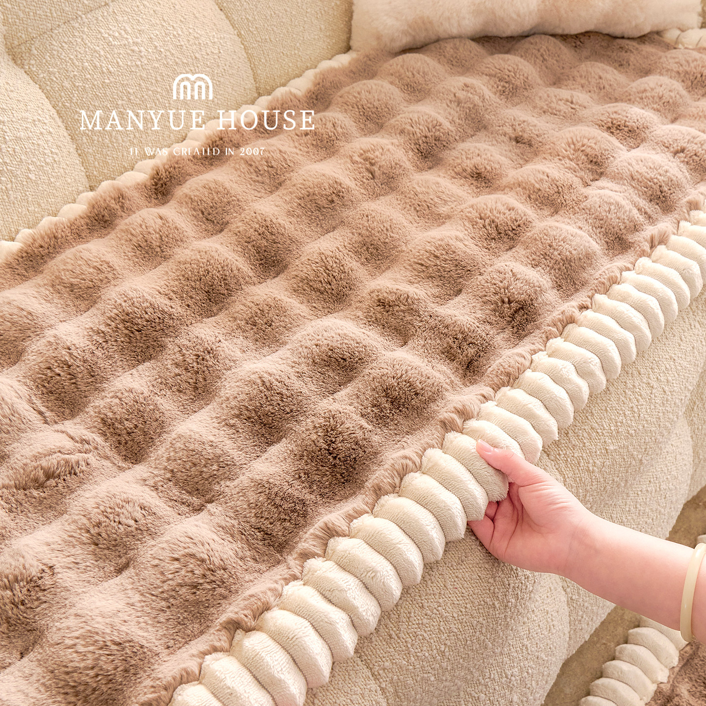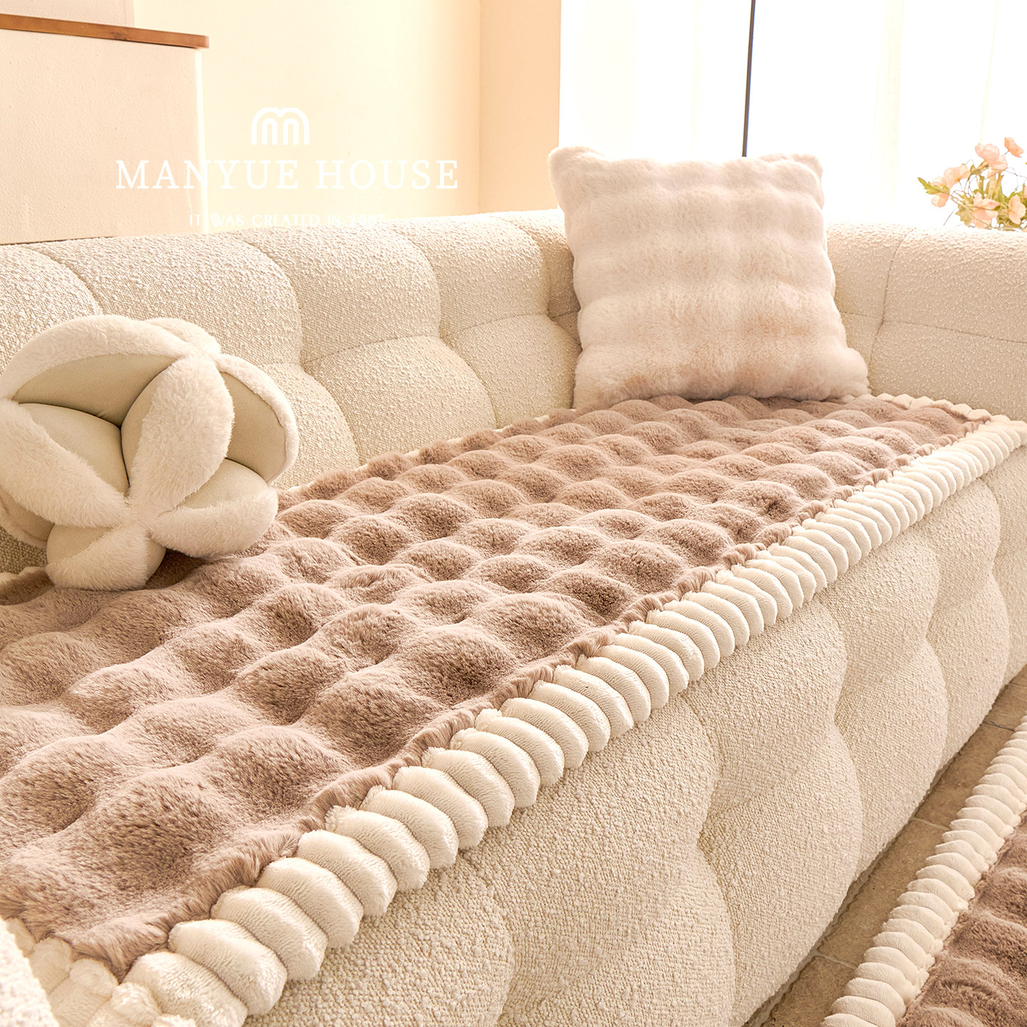 蔓越家奶油风兔毛绒沙发盖巾
