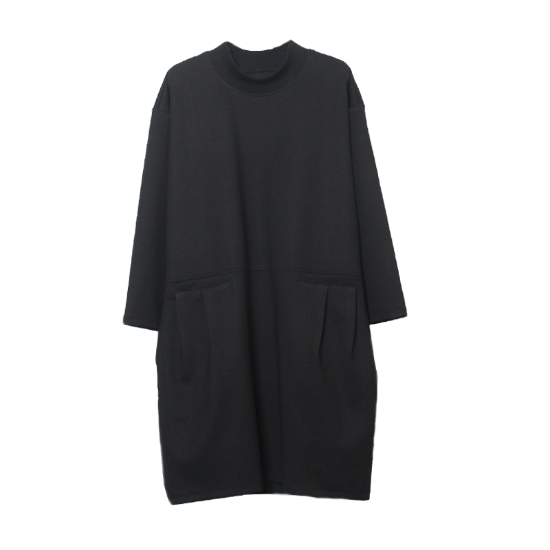 大码连衣裙女中长款春秋新款宽松立领茧型时尚长袖休闲直筒打底裙