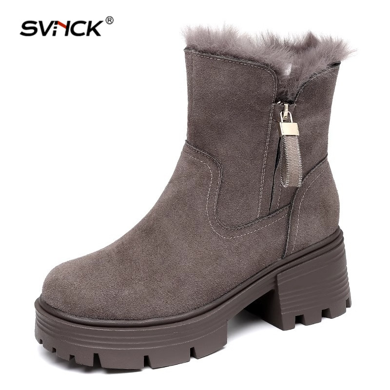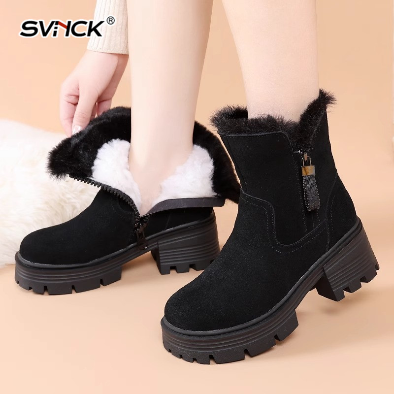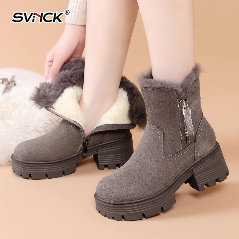 SVNCK皮毛一体羊毛真皮棉鞋女冬加绒加厚雪地靴防滑保暖厚底短靴