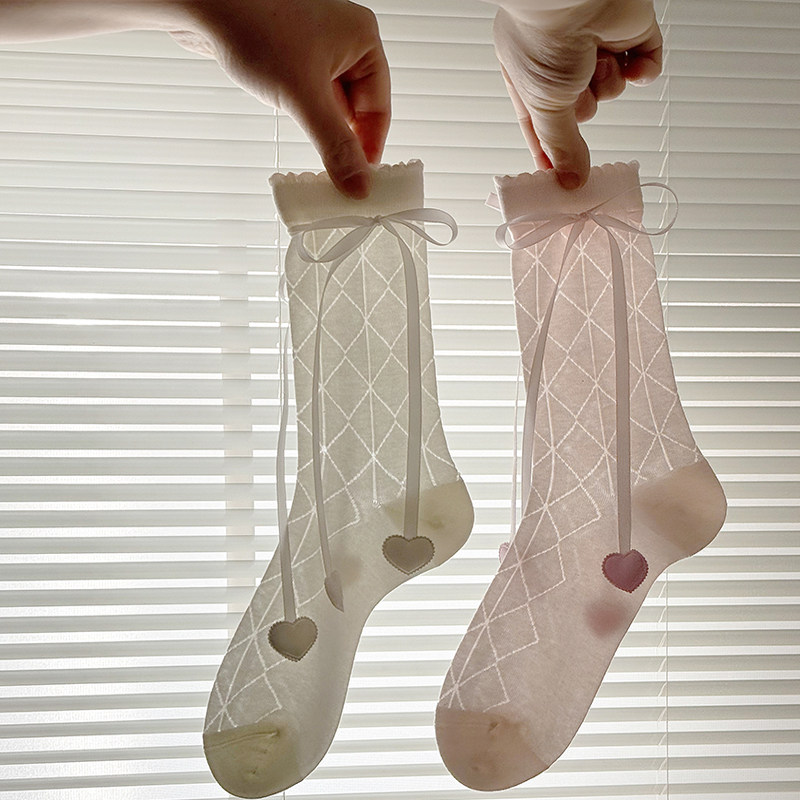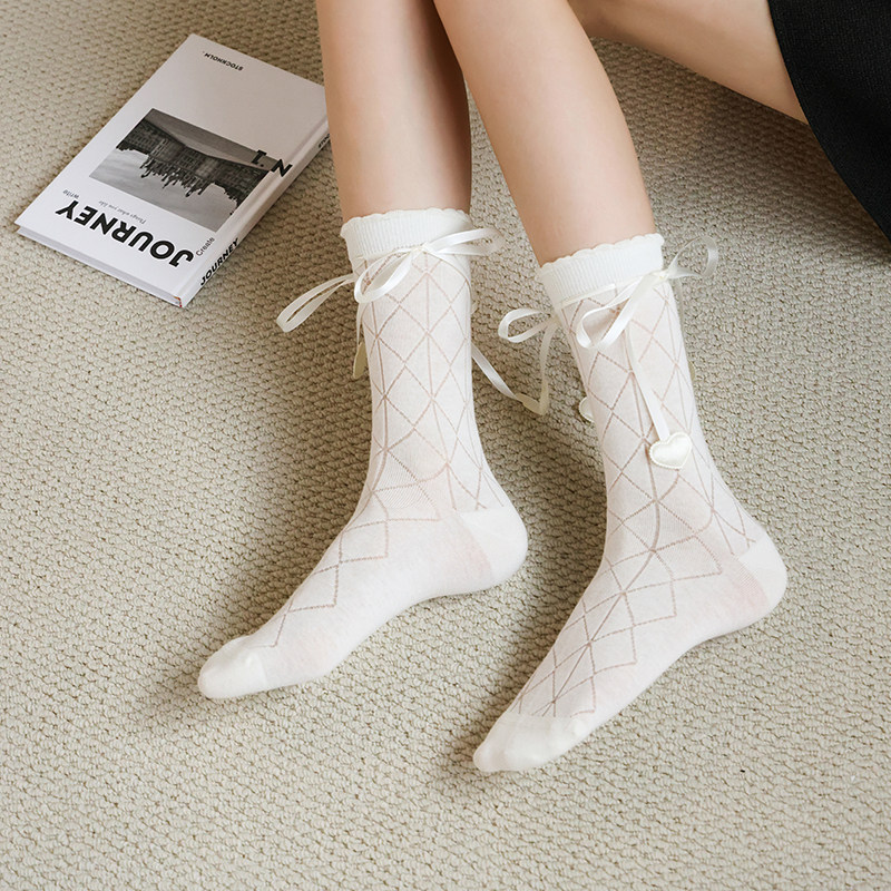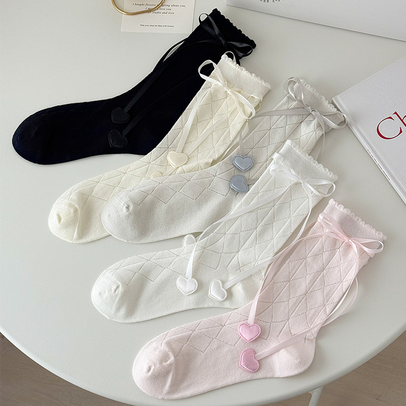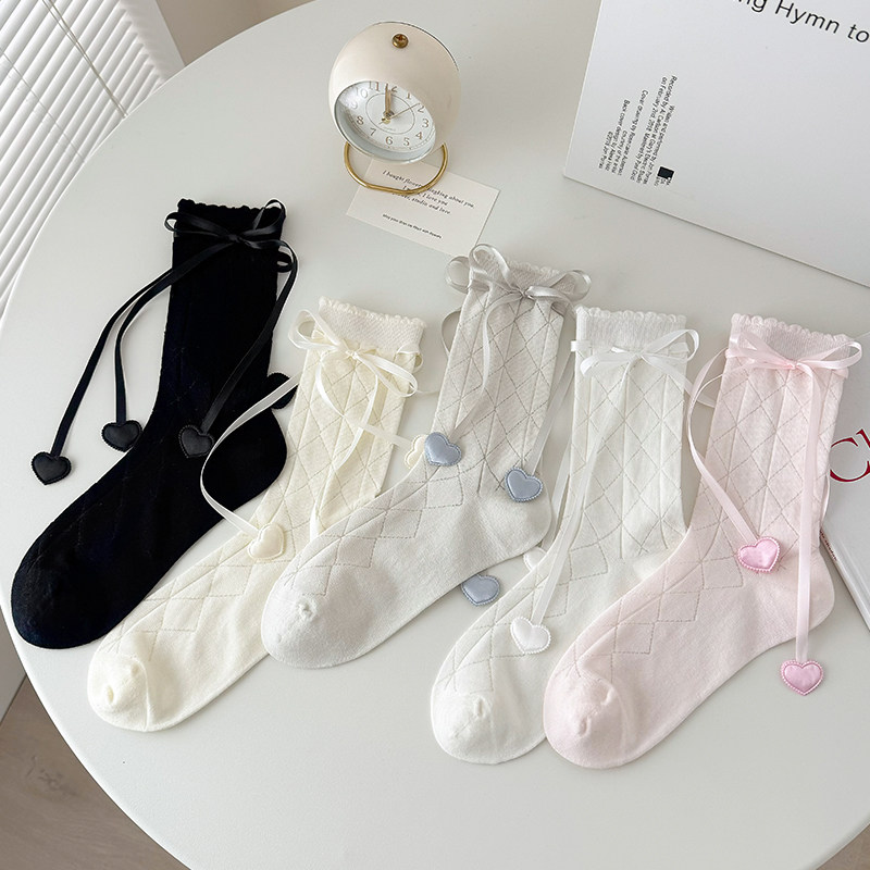 精梳棉中筒袜子女爱心穿绳装饰春夏薄款洛丽塔女士日系棉袜不起球