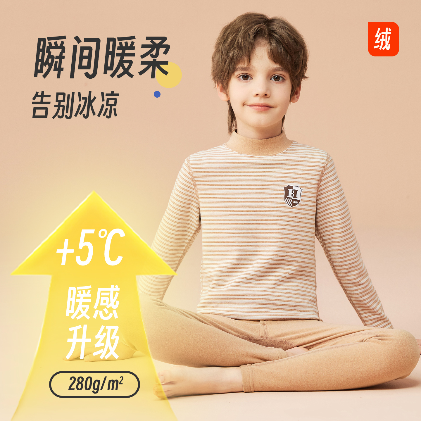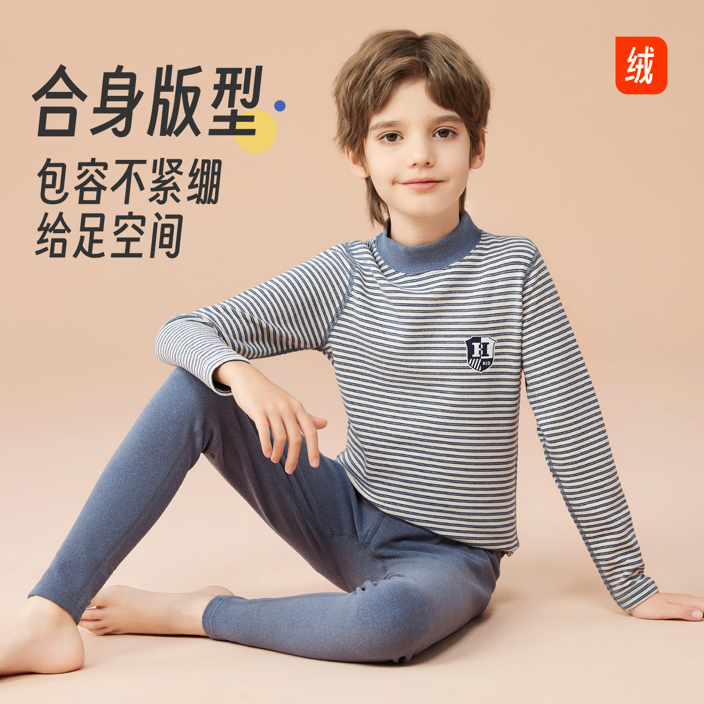 儿童保暖内衣男童加绒德秋衣秋裤套装加厚大童青少年男孩半高领