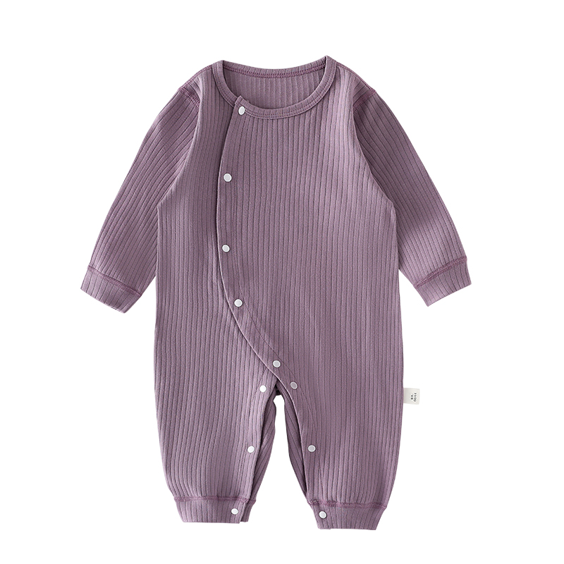 素色纯棉婴儿连体衣春秋款长袖哈衣睡衣新生婴儿衣服男女宝宝爬服