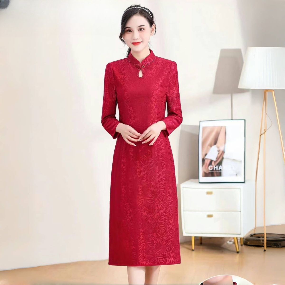 改良旗袍婚宴礼服连衣裙2025春秋新款气质妈妈喜婆婆减龄显瘦裙子