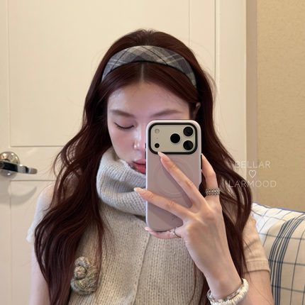 灰绿经典复古格纹爱心学院风发箍
