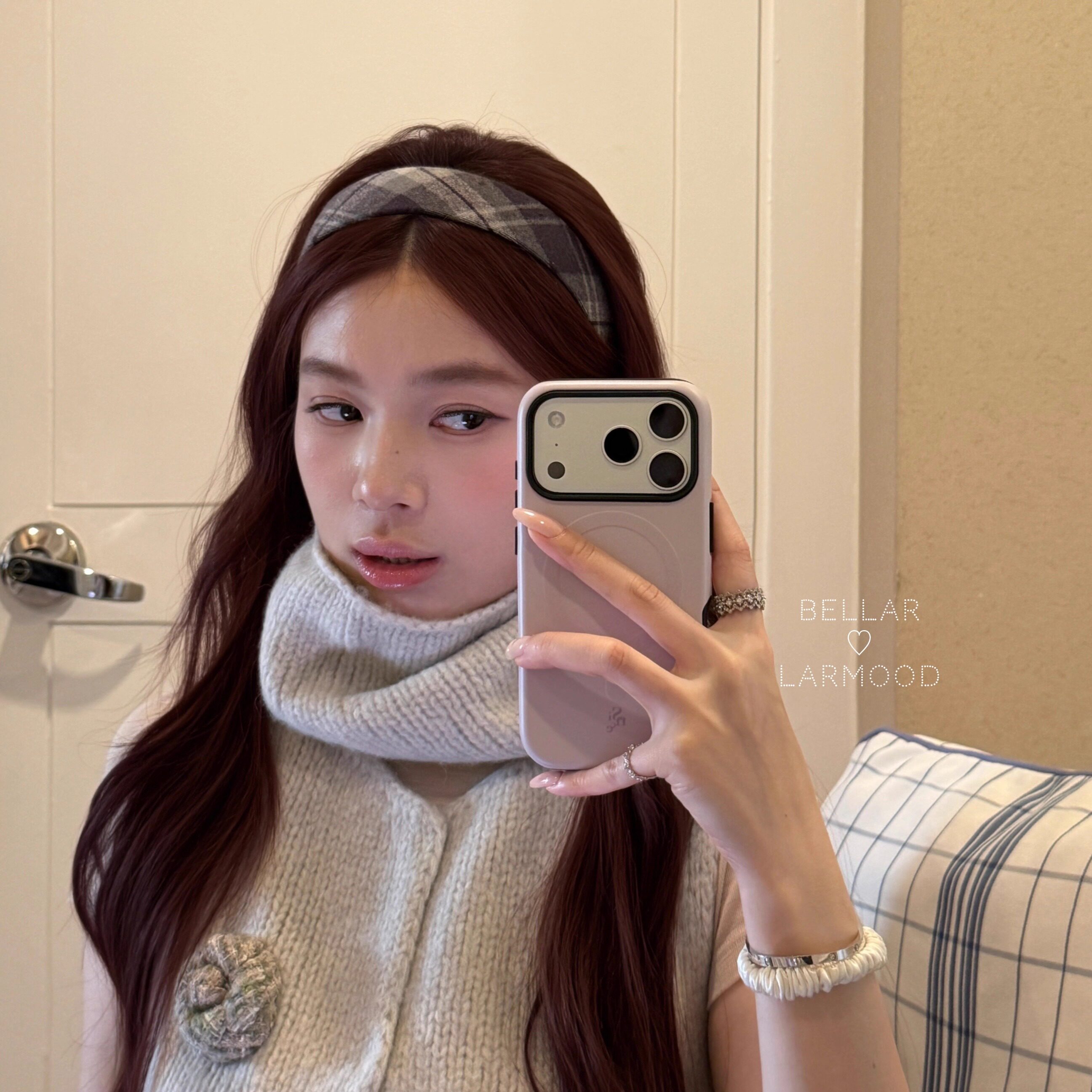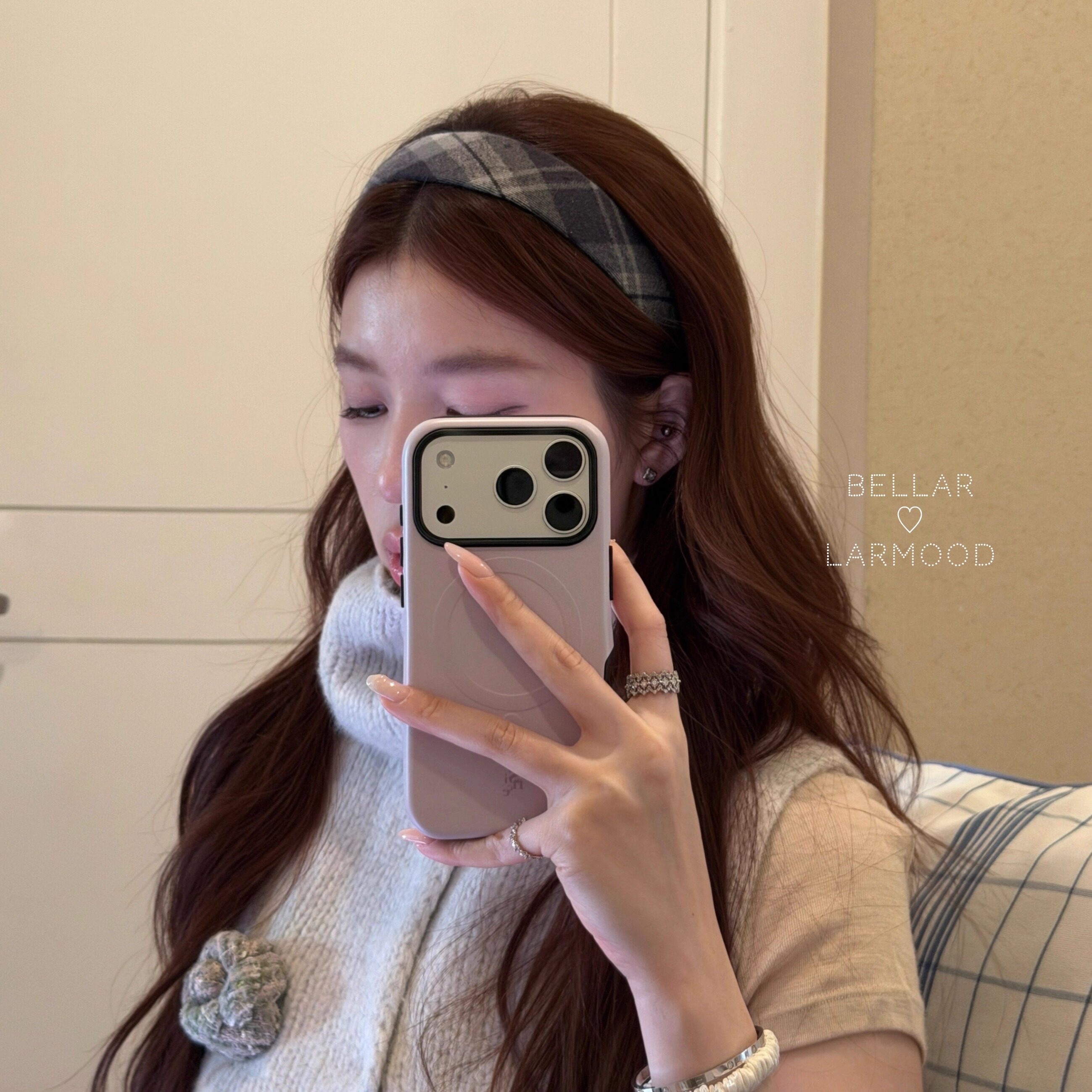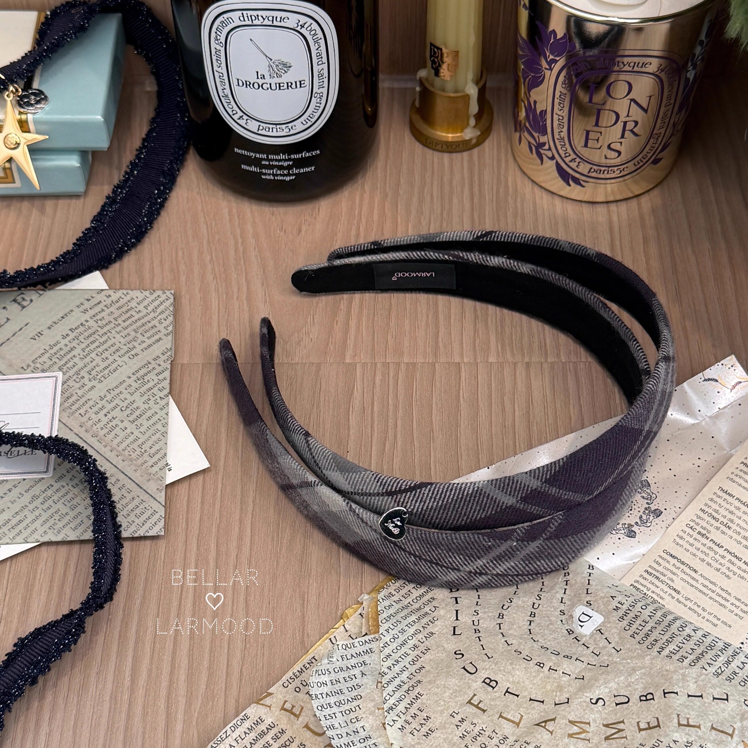 Bellar/larmood Vintage 灰绿bbr经典复古格纹少女学院风爱心发箍