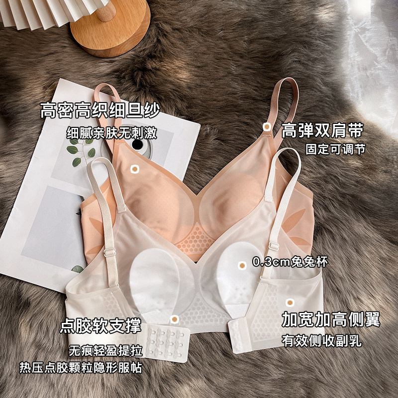 无痕内衣女超薄款大胸显小胸收副乳防下垂无钢圈透气文胸罩兔耳朵