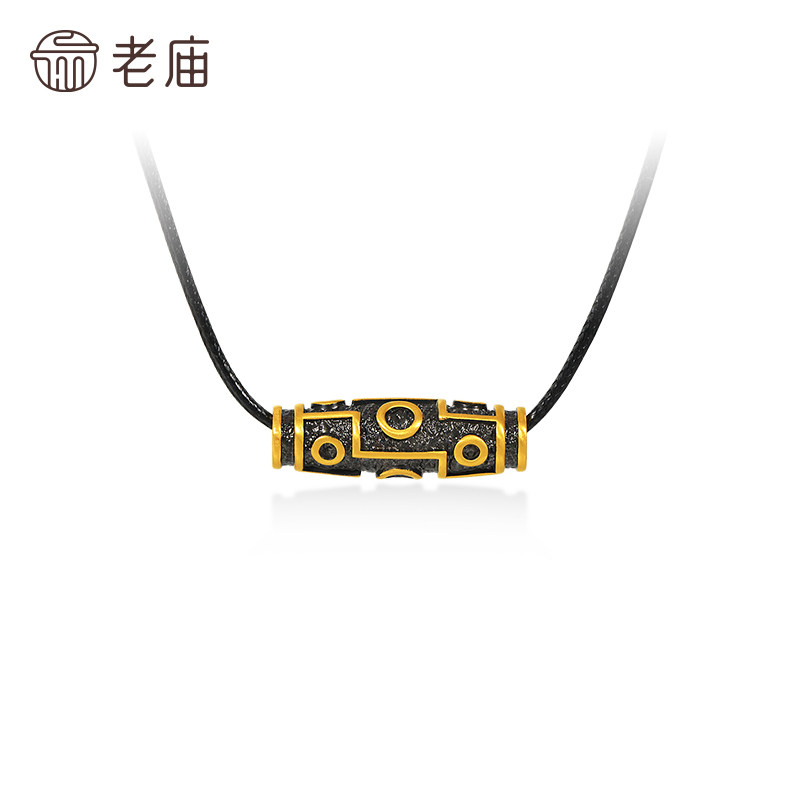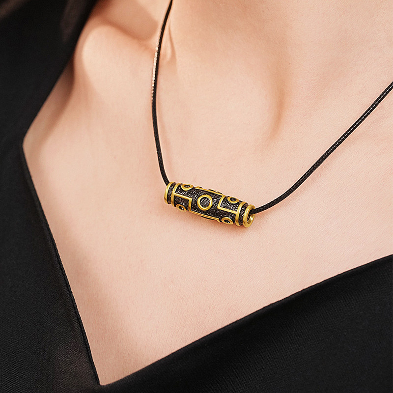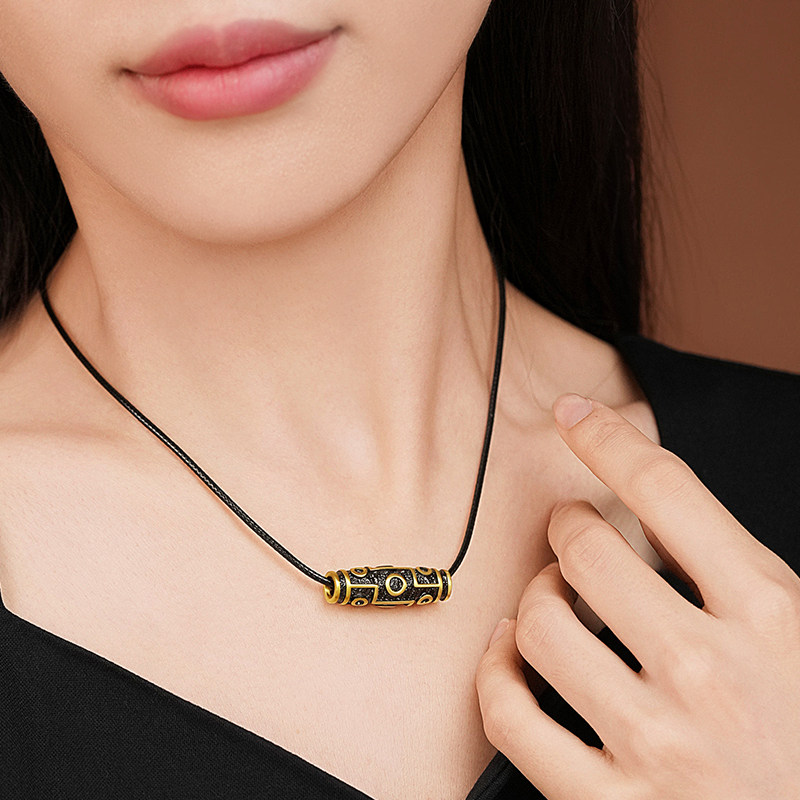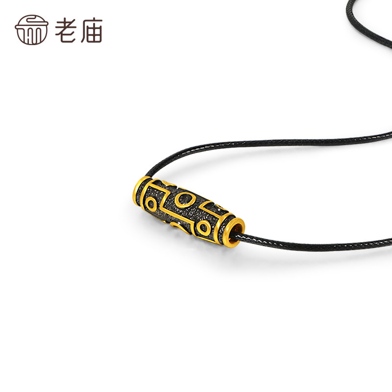 老庙黄金足金九眼天珠挂坠潮酷电黑个性时尚5D百搭中式男生送礼