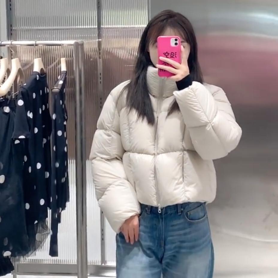 泡芙手感女士小个子短款立领羽绒服2025冬款加厚白鸭绒面包服外套