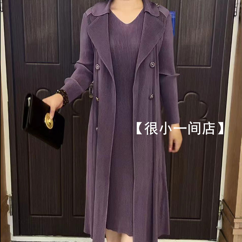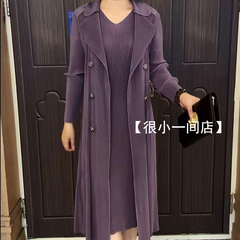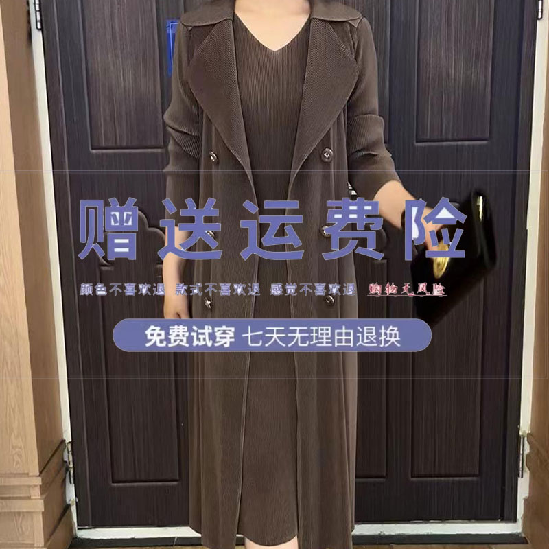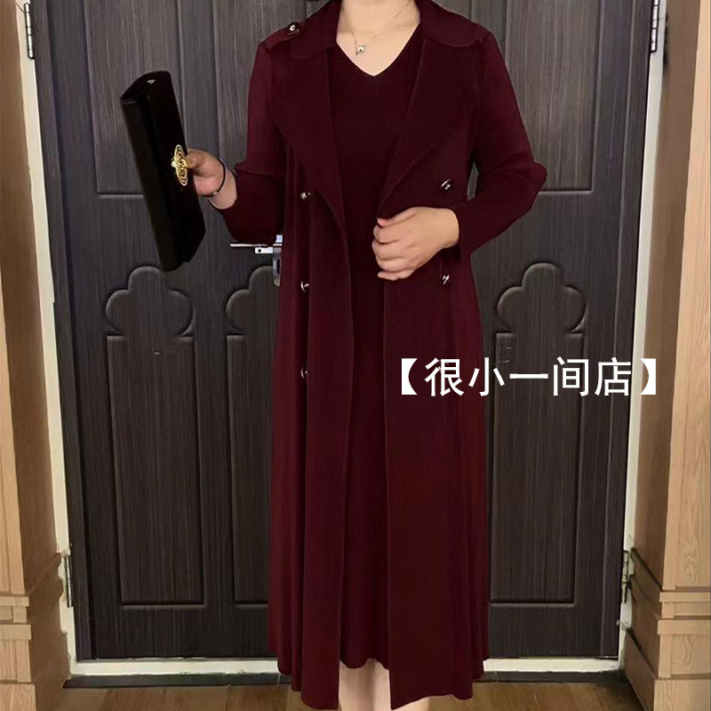 高档西装领假两件风衣裙秋季新款收腰显瘦妈妈中长款连衣裙套装女