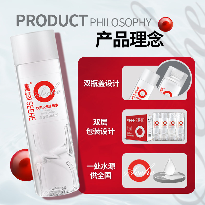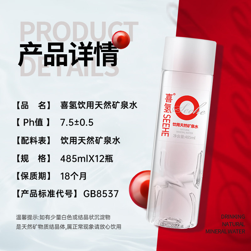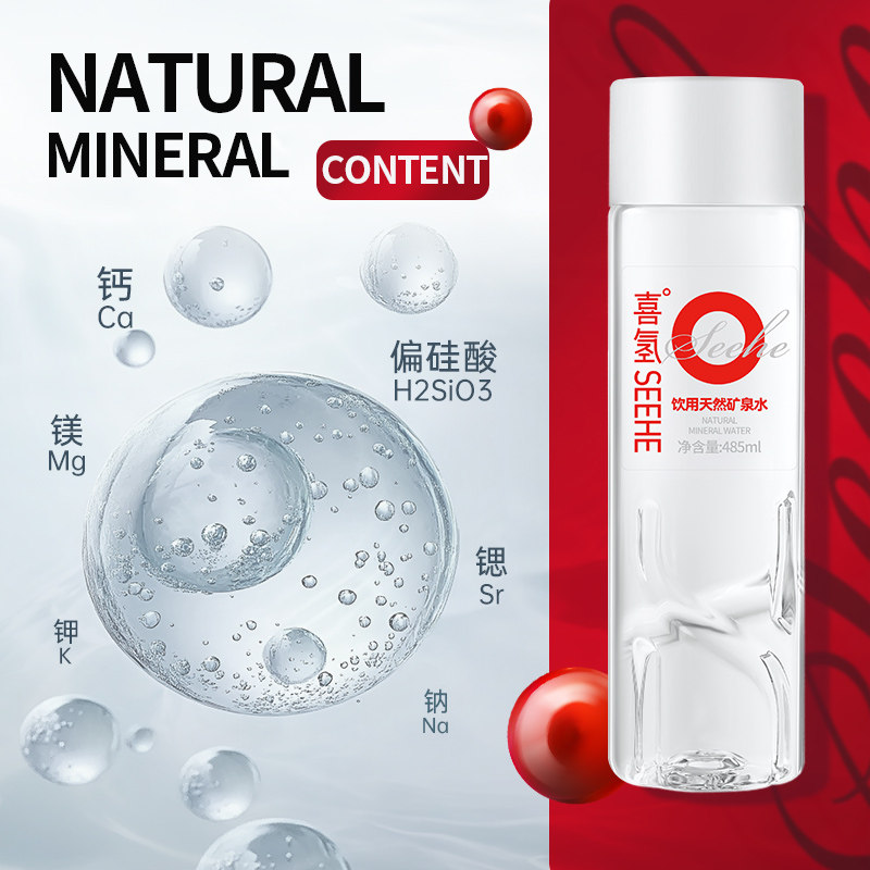 喜氢SEEHE|弱碱性天然矿泉水485ml*12瓶 偏硅酸高端整箱饮用水