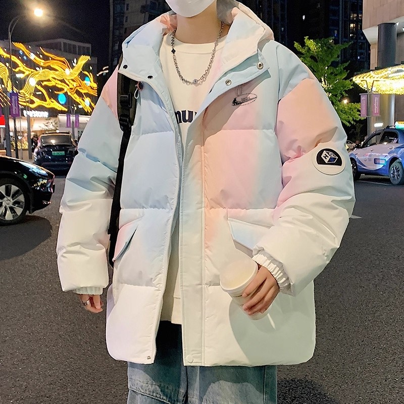 耐克顿羽绒棉服男士冬季宽松加厚保暖美式潮流渐变色连帽情侣外套
