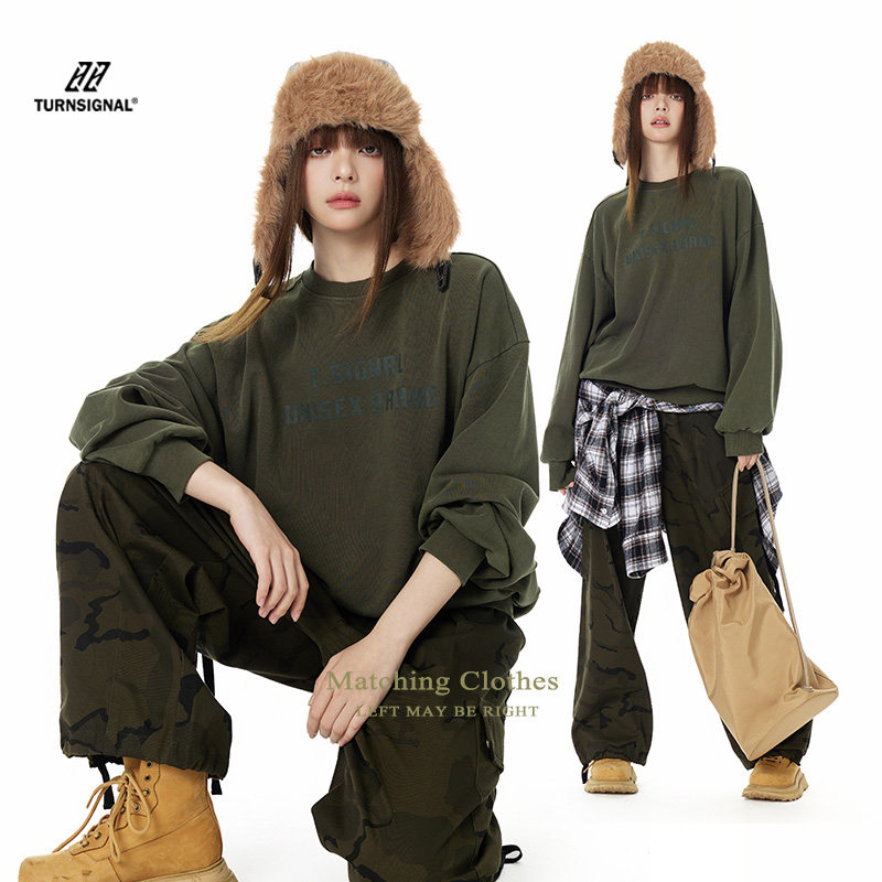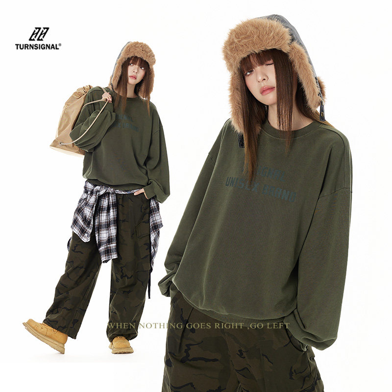 TurnSignal潮牌圆领卫衣女春季2025新款纯棉休闲宽松长袖套头上衣