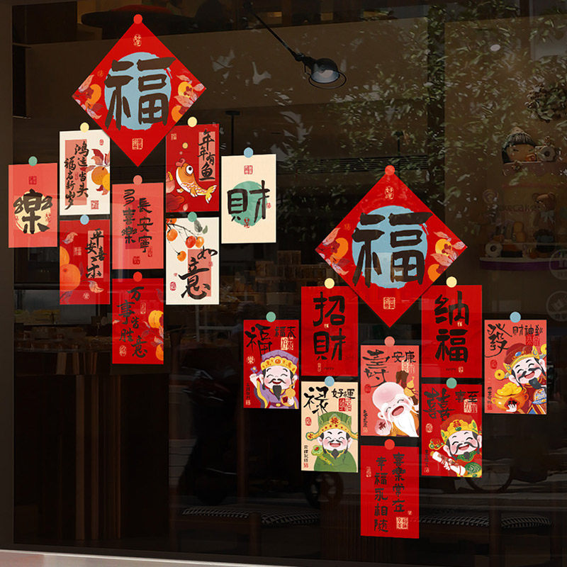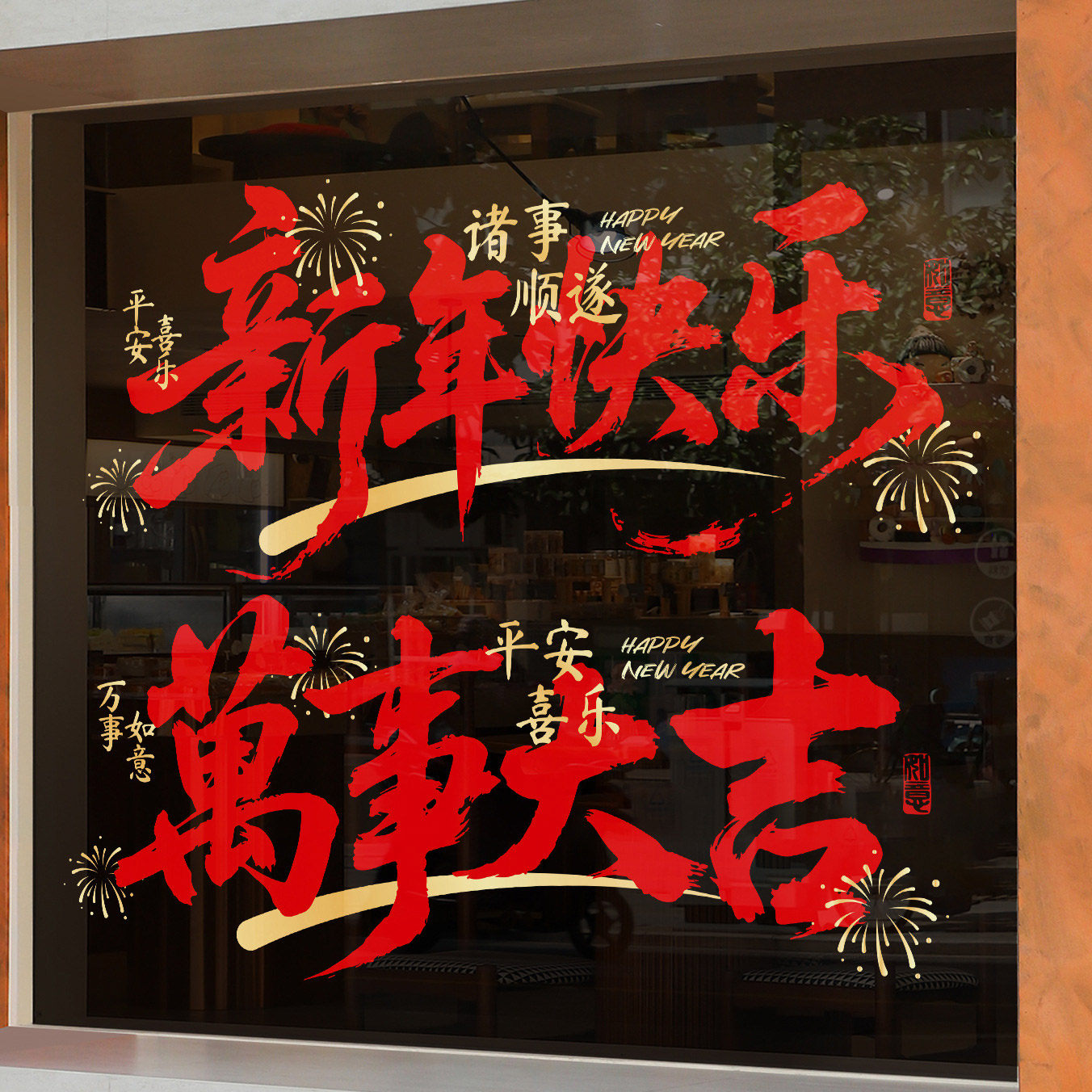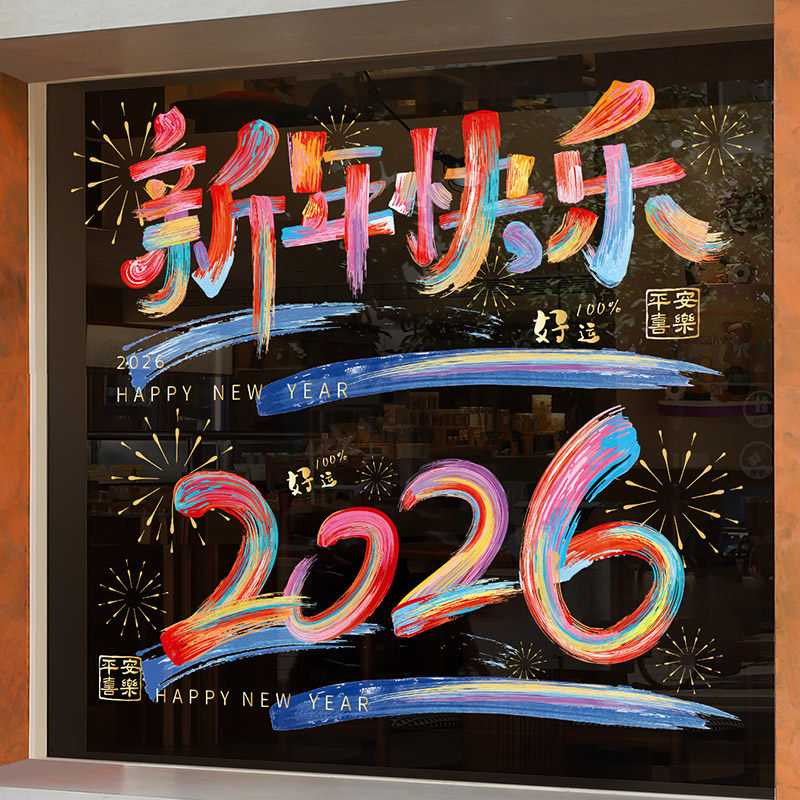 2026新年装饰马年静电窗贴春节窗花过年场景氛围布置玻璃门贴纸