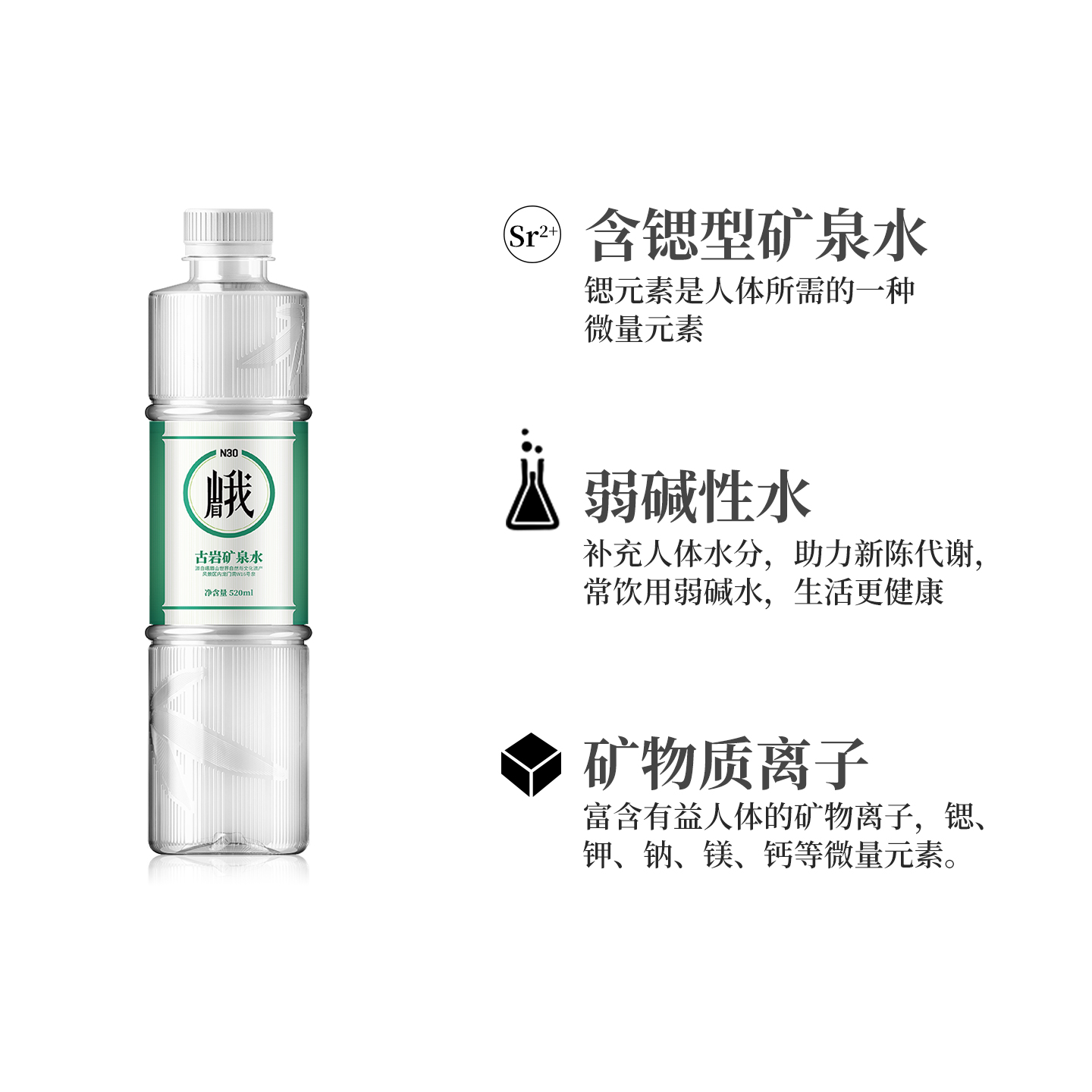 峨眉山含锶古岩天然饮用矿泉水520ml*24瓶弱碱性大瓶饮用水整箱