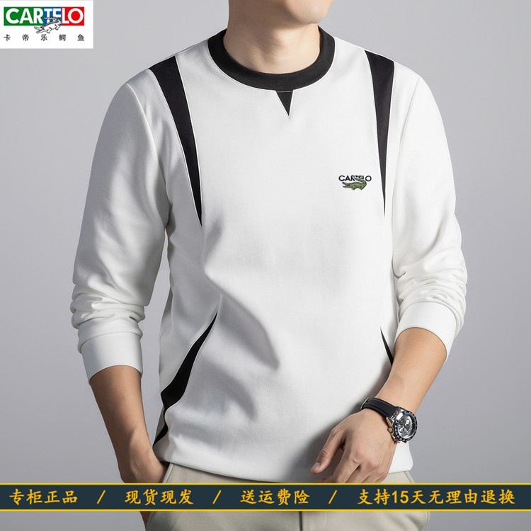 CARTELO卡帝乐鳄鱼男士秋冬款圆领卫衣拼接色时尚宽松长袖T恤休闲