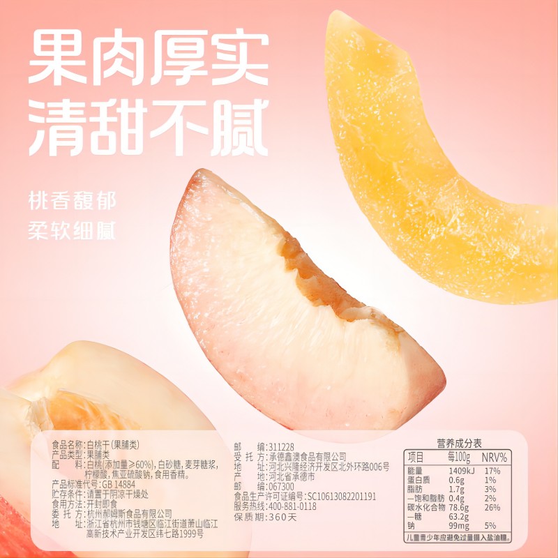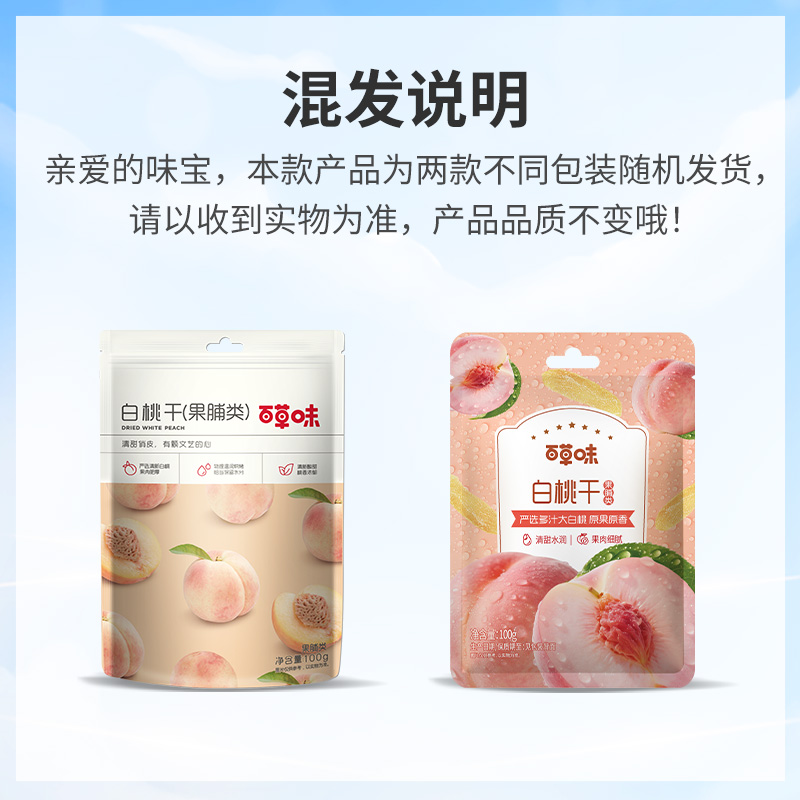 百草味白桃干100g*2水蜜桃子肉零食果脯蜜饯水果干脆片休闲特产