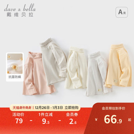 戴维贝拉女童长袖T恤男童高领打底衫秋装新款宝宝洋气内搭上衣冬