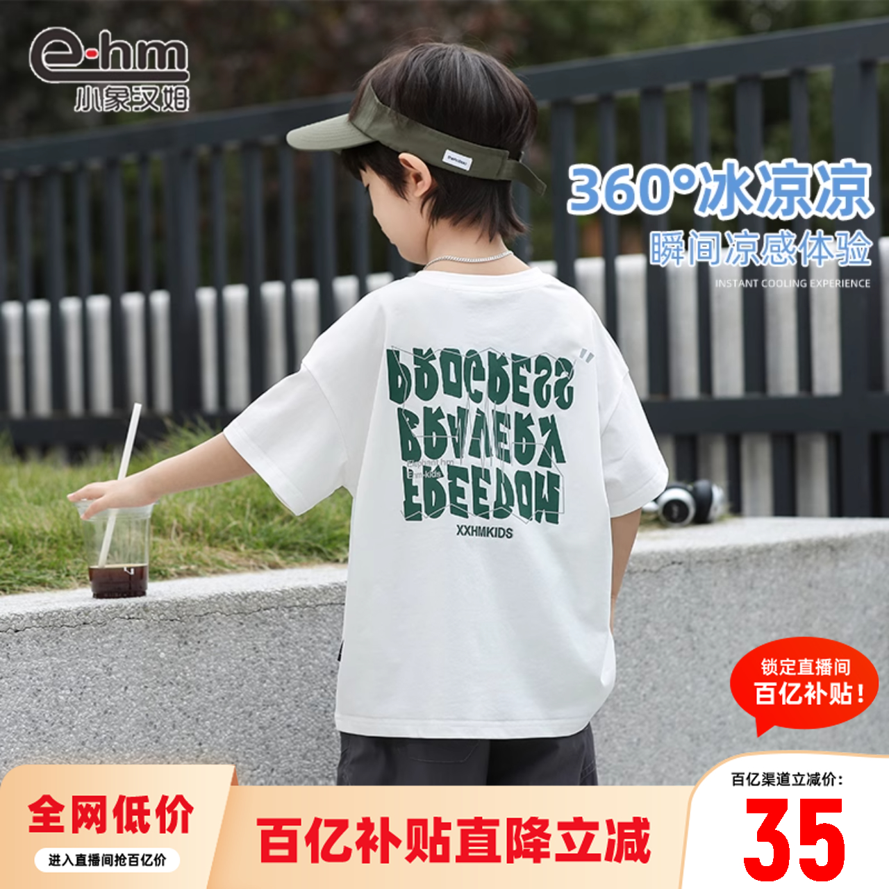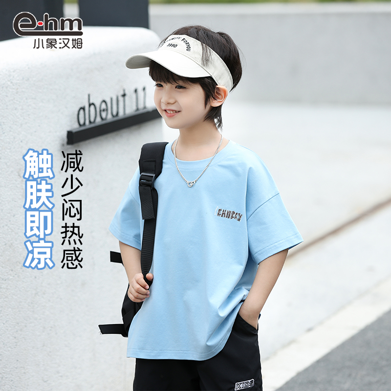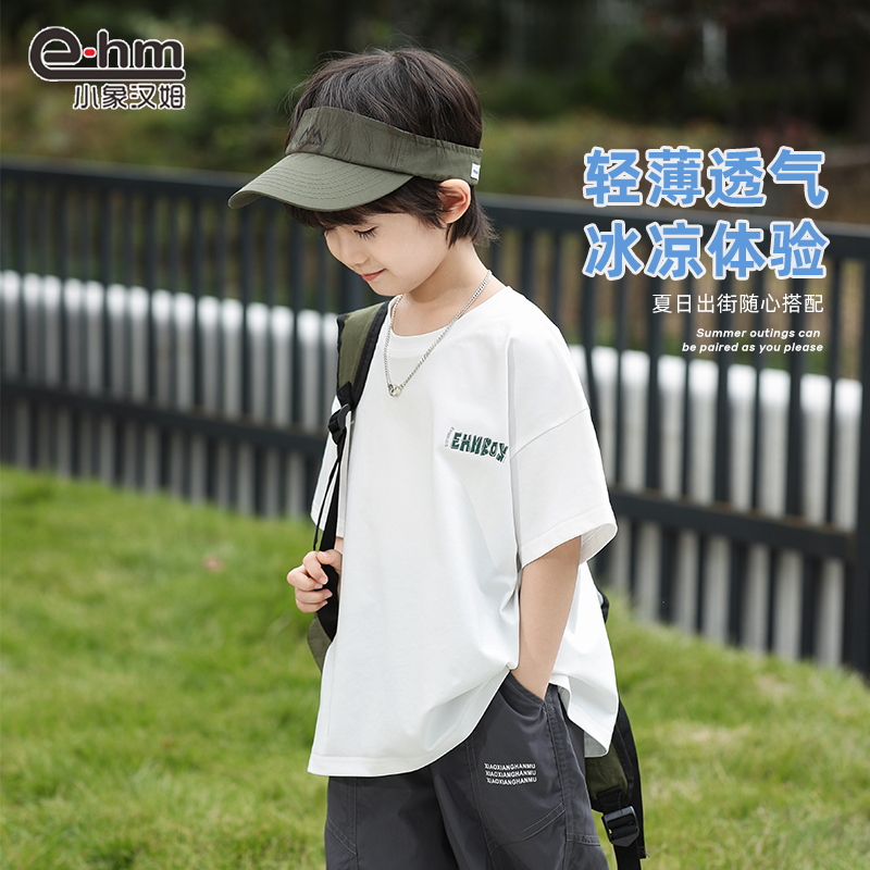 A类小象汉姆童装男童短袖T恤儿童短袖体恤衫拼接款2025夏装新款潮