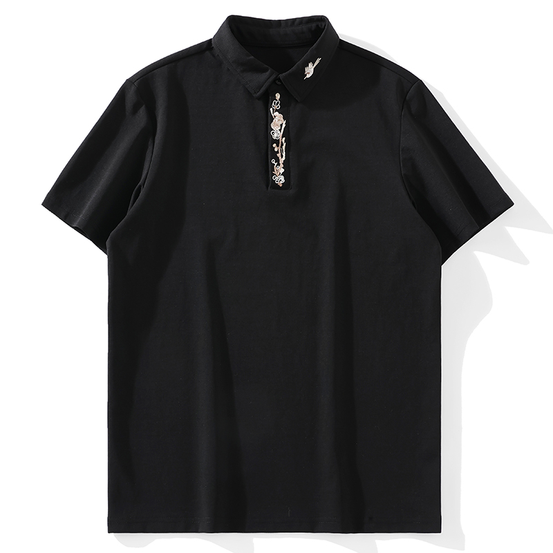 直播专属 新中式梅花刺绣翻领POLO衫男士休闲夏季新款短袖上衣潮