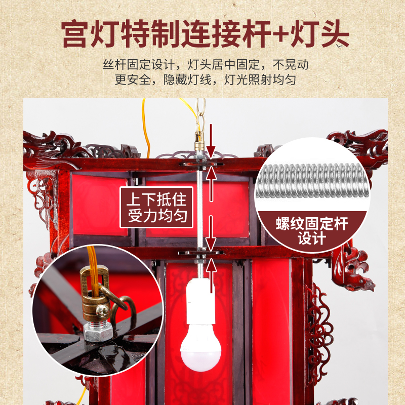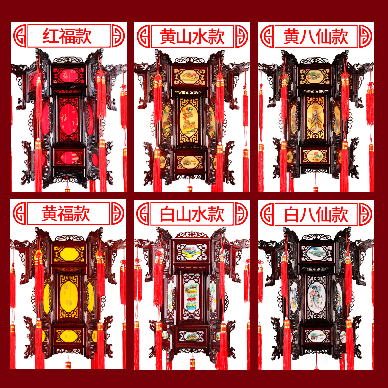木制旋转走马宫灯中式仿古木雕大红灯笼装饰实木宫廷灯笼新年吊灯